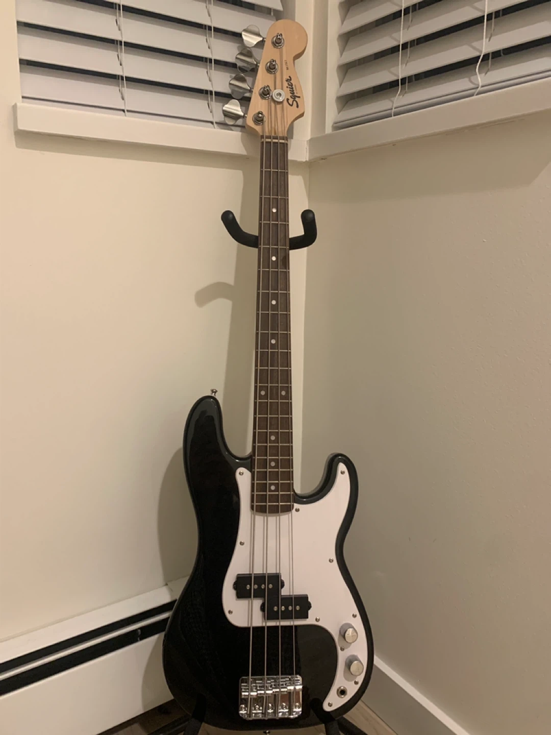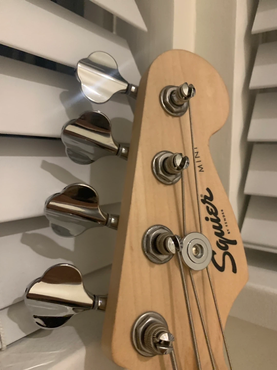 It's in great shape and perfect for beginners or those looking for a smaller, more portable bass guitar.