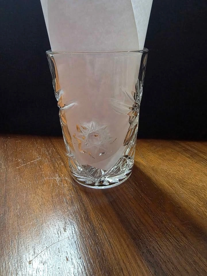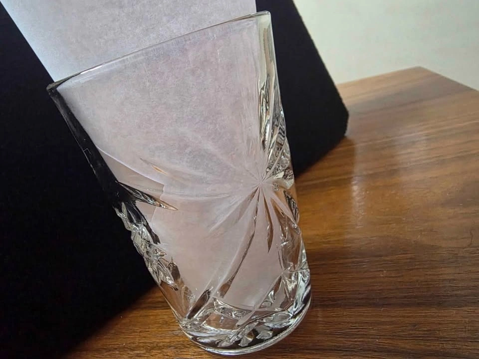 5 Vintage Anchor Hocking early American prescut (EAPC) clear glass flat juice glasses, also known by the "star of David" or "starburst" pattern name.