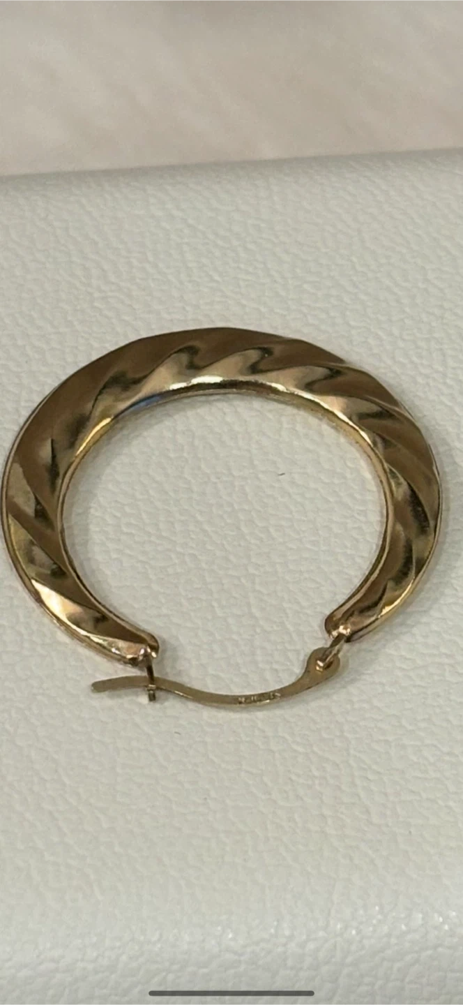 Selling a pair of Gold Luxe 10KT gold hoop earrings. They come in their original box and are brand New !!! The earrings have a lovely twisted design.