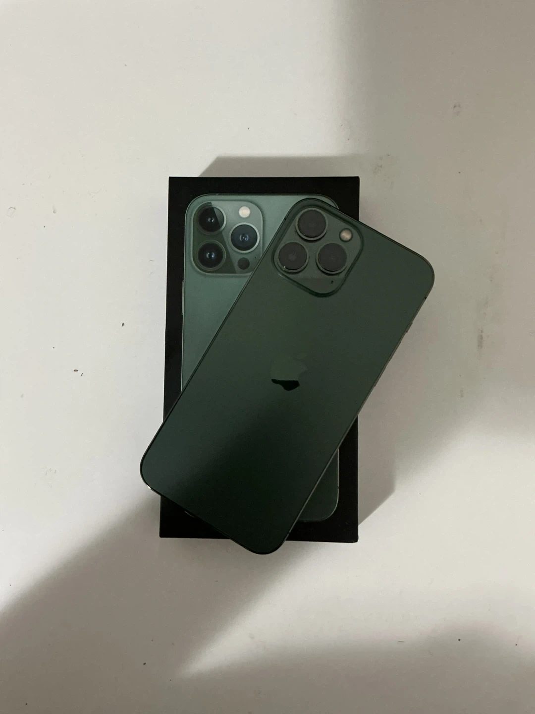 Selling an iPhone 13 Pro Max with 128GB storage and 89% battery health in a lovely green colour! It comes with its original box. If you're interested, feel free to message me!