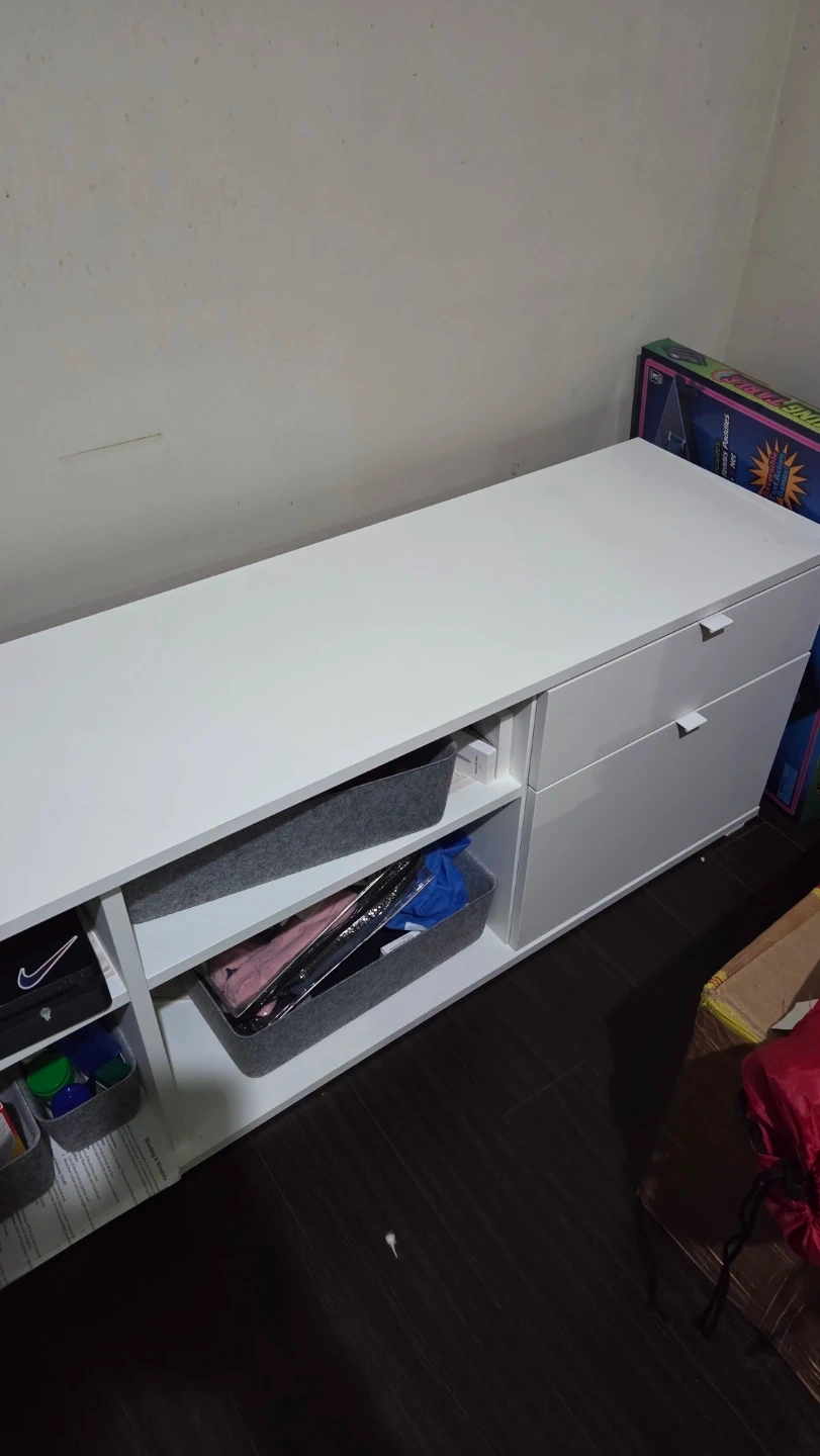 Beautiful white storage cabinet from IKEA, used like new. Bought 8 months ago and kept very clean. No damage, very sturdy, and looks almost new.