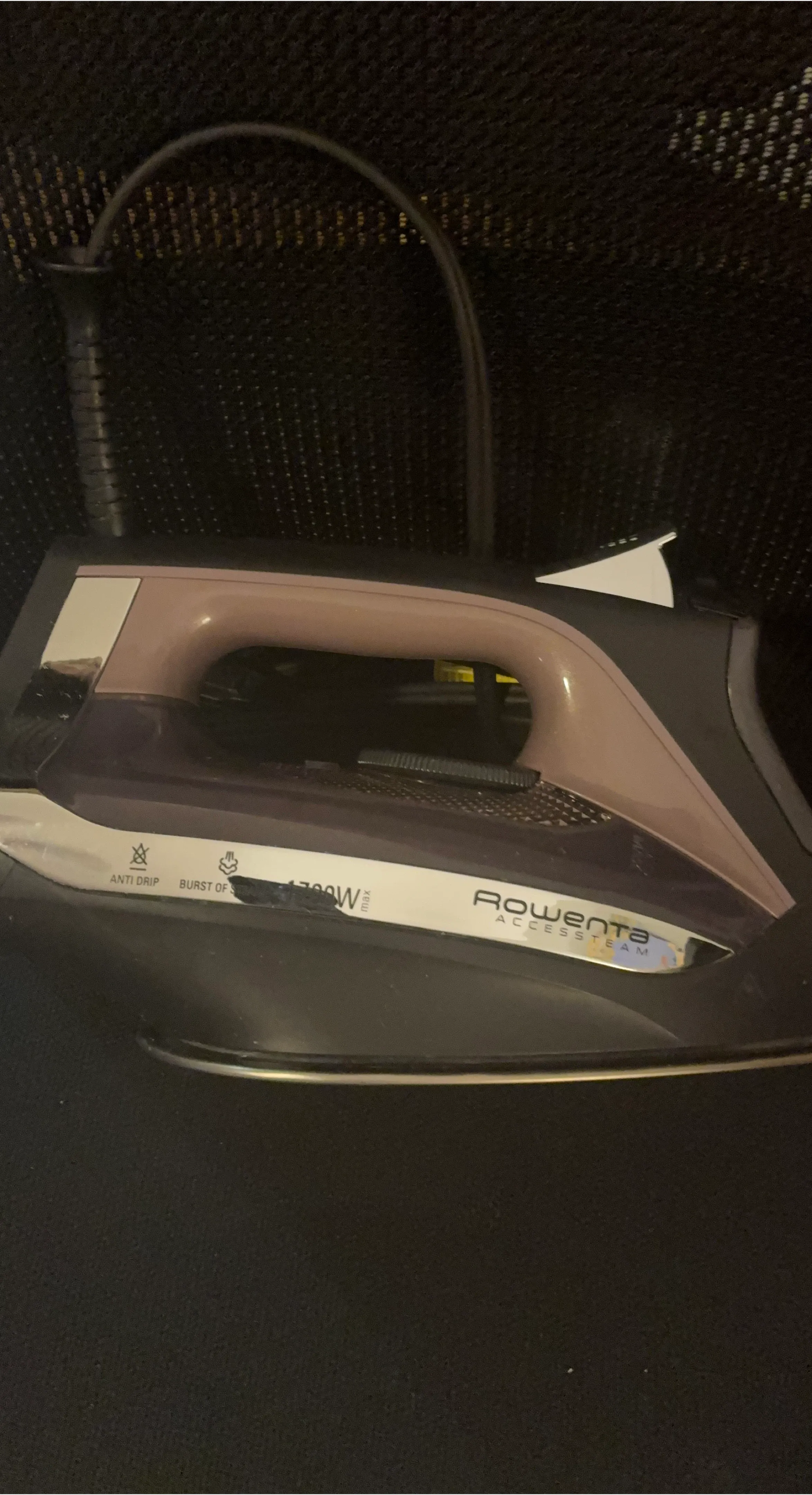 Selling a Rowenta Access Steam iron. It has a 1700W power output and features like anti-drip and burst of steam. It also has a spray function