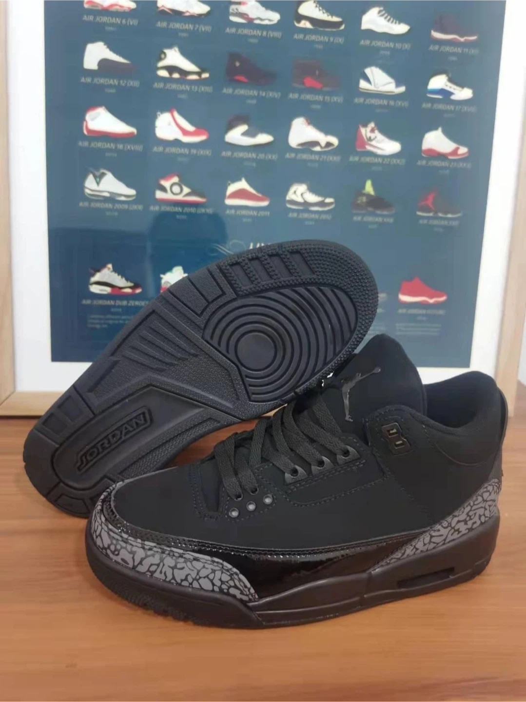 Selling a pair of Jordan 3 Retro Black Cat sneakers in size 10. These are in great condition and feature a sleek, all-black design with the classic elephant print detailing. Perfect for adding a stylish touch to your sneaker collection!