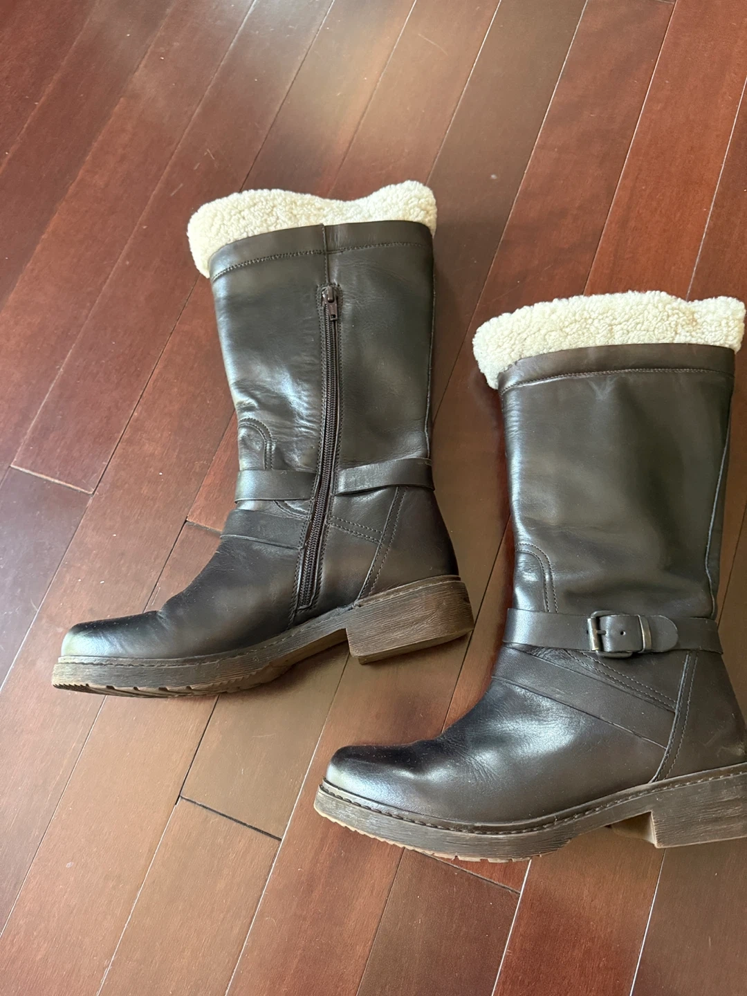 Selling a pair of used Celtic & Co. leather winter boots. They are size 38 and have a cozy faux fur lining. Perfect for keeping your feet warm and stylish during the colder months!