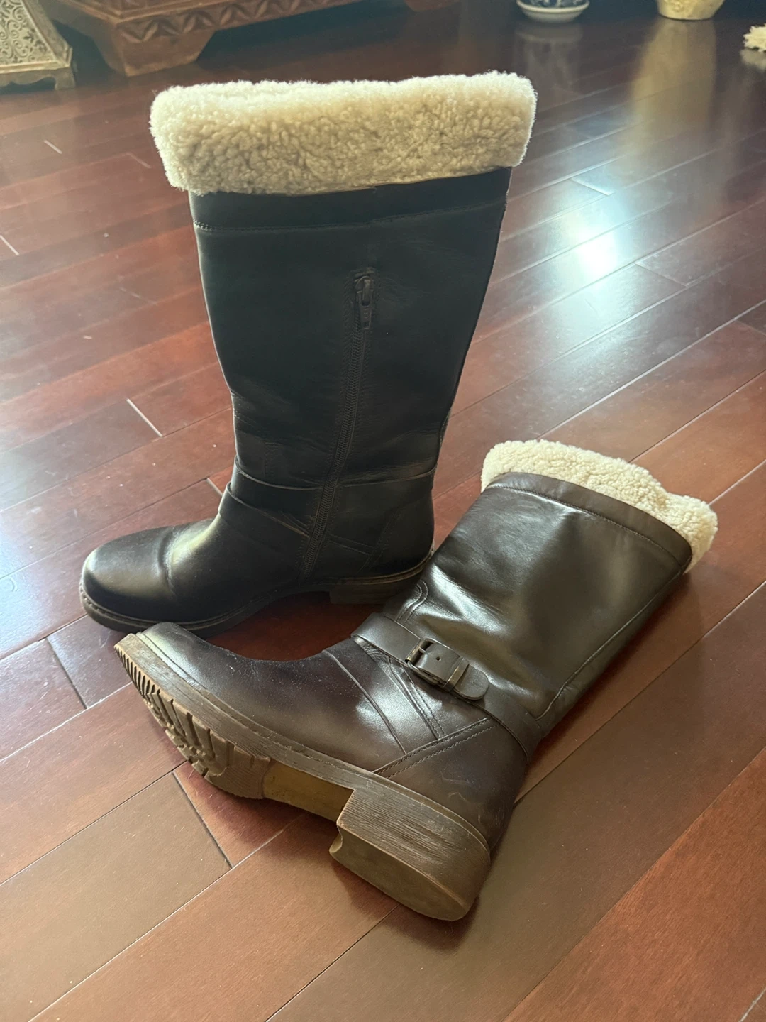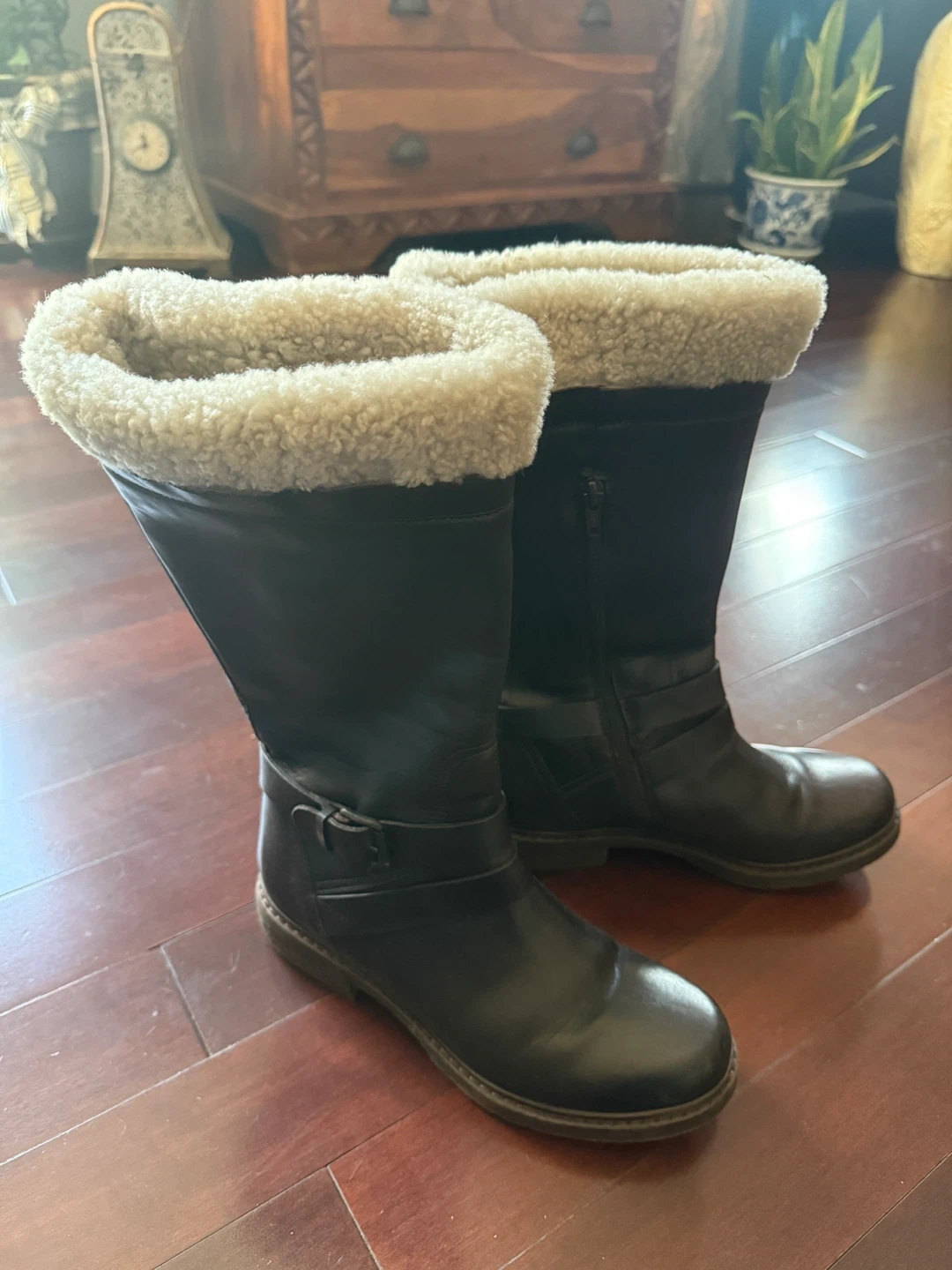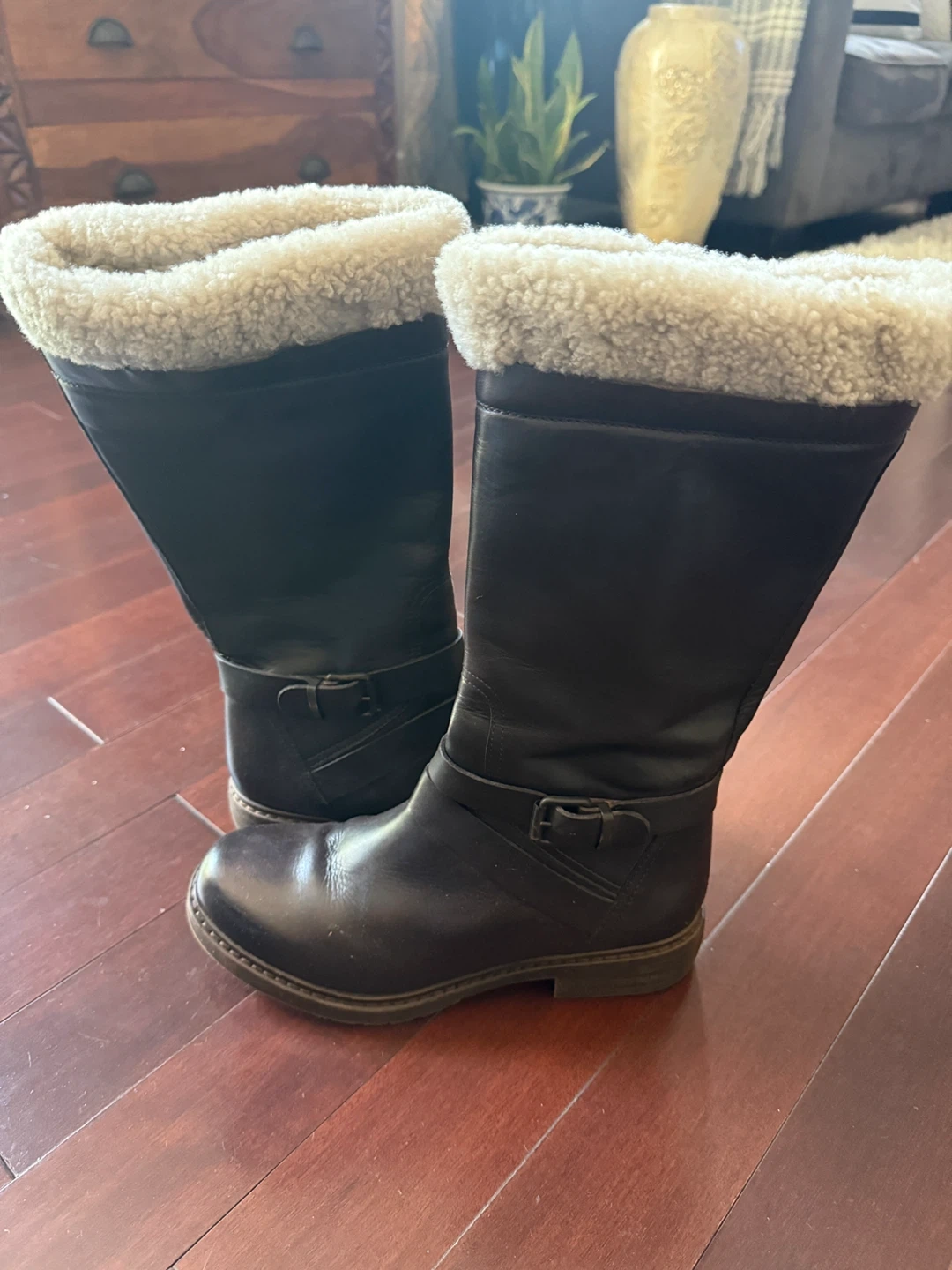 Selling a pair of used Celtic & Co. leather winter boots. They are size 38 and have a cozy faux fur lining. Perfect for keeping your feet warm and stylish during the colder months!