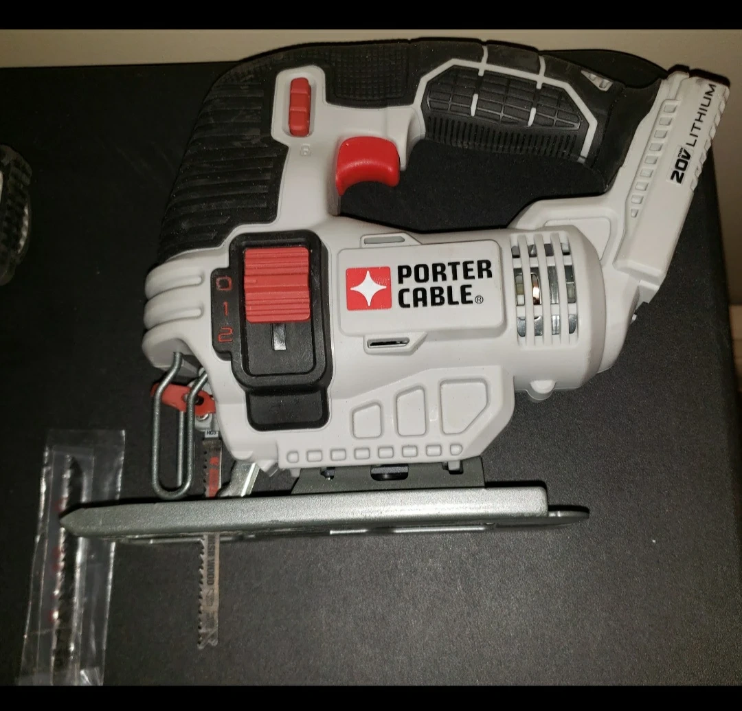 Selling a Porter Cable 20V cordless power tool set. It includes various tools like a circular saw, jigsaw, flashlight, reciprocating saw, drill, grinder, and oscillating tool. Also included are a battery, charger, and manuals. Great for DIY projects!