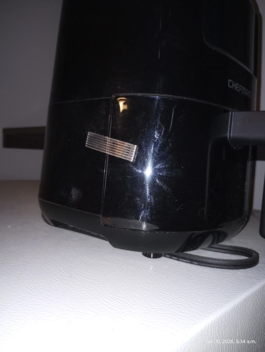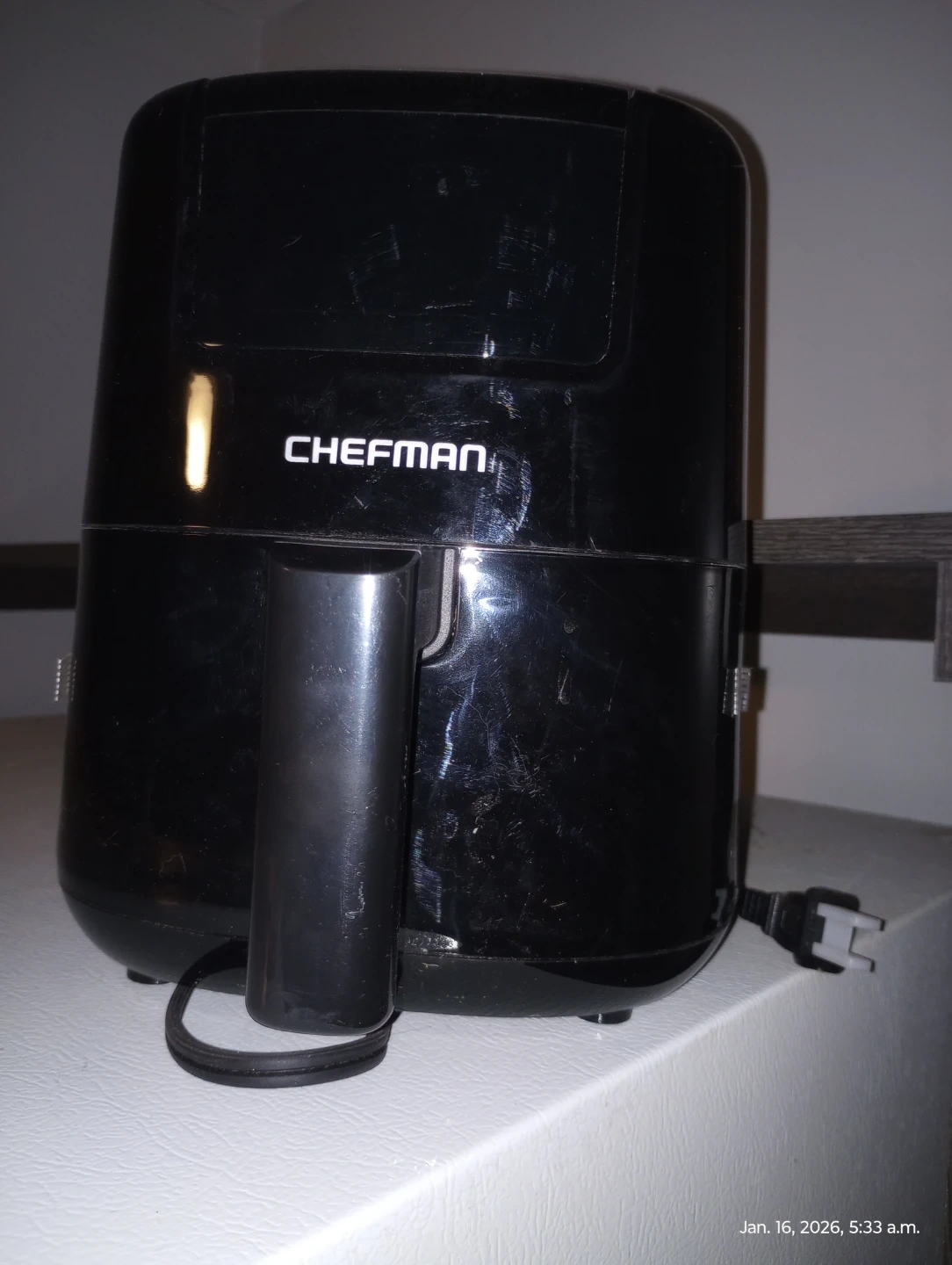 I'm selling a black Chefman air fryer. It's in good condition and ready for a new kitchen! It still has the tape on it. Great for quick and easy meals!