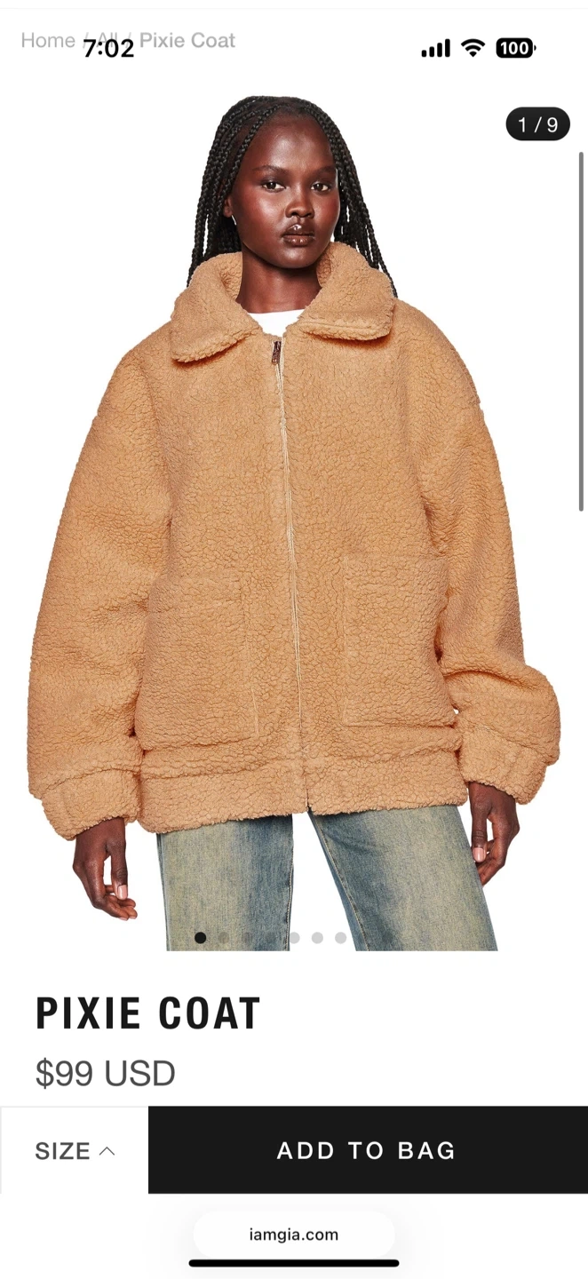 Selling an I.AM.GIA Pixie Coat! It's a cozy teddy style jacket, perfect for layering. The color is a beautiful neutral tan. It's in great condition and ready for a new owner!