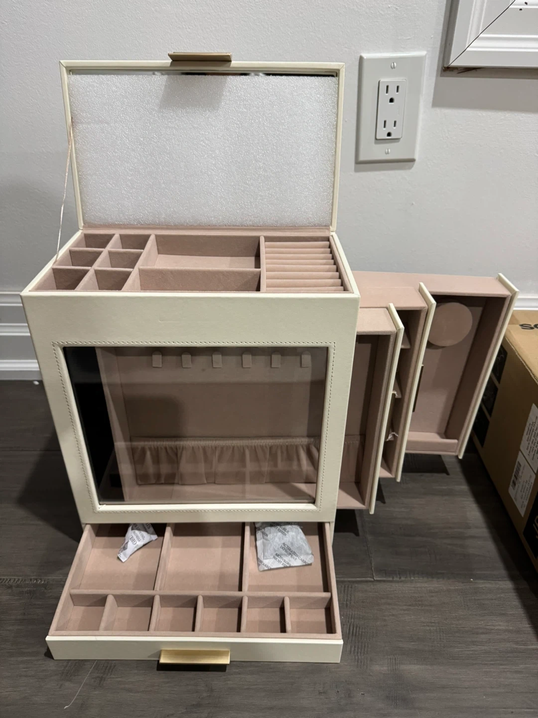 Brand new SONGMICS Jewelry Box, 5-Layer Jewelry Organizer, 6.1 x 10.3 x 12.6 Inches, Cloud White and Metallic Gold UJBC162W01