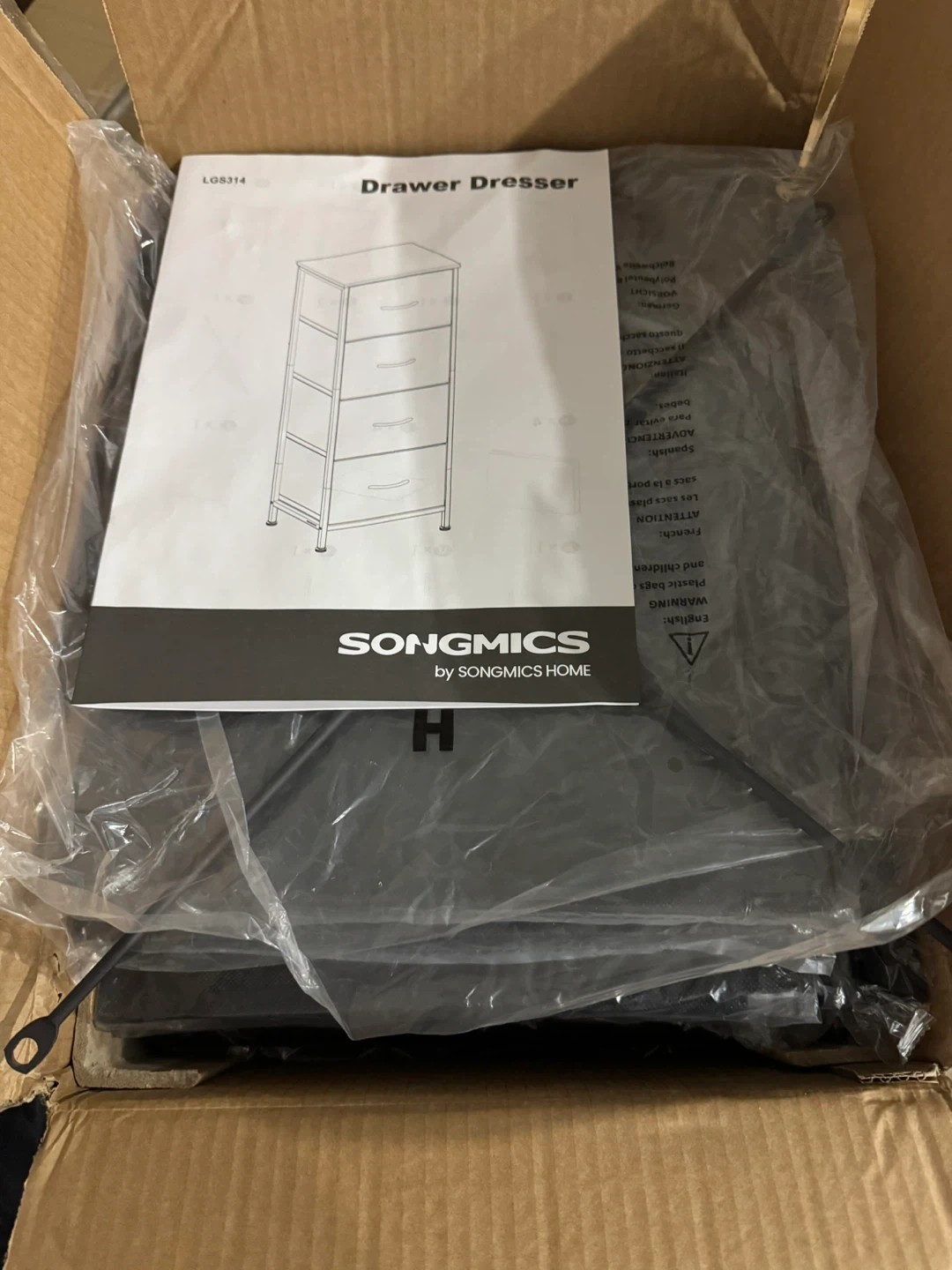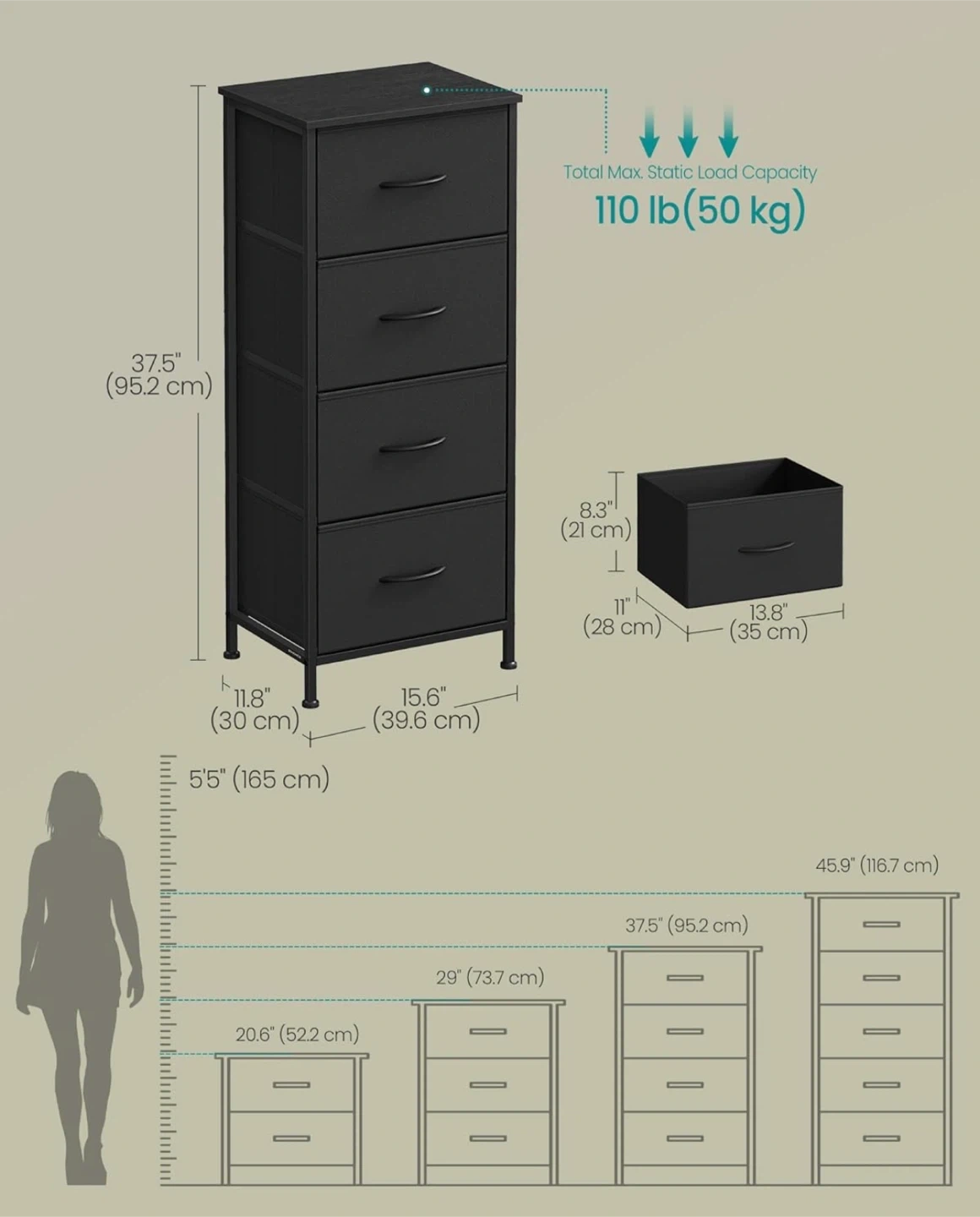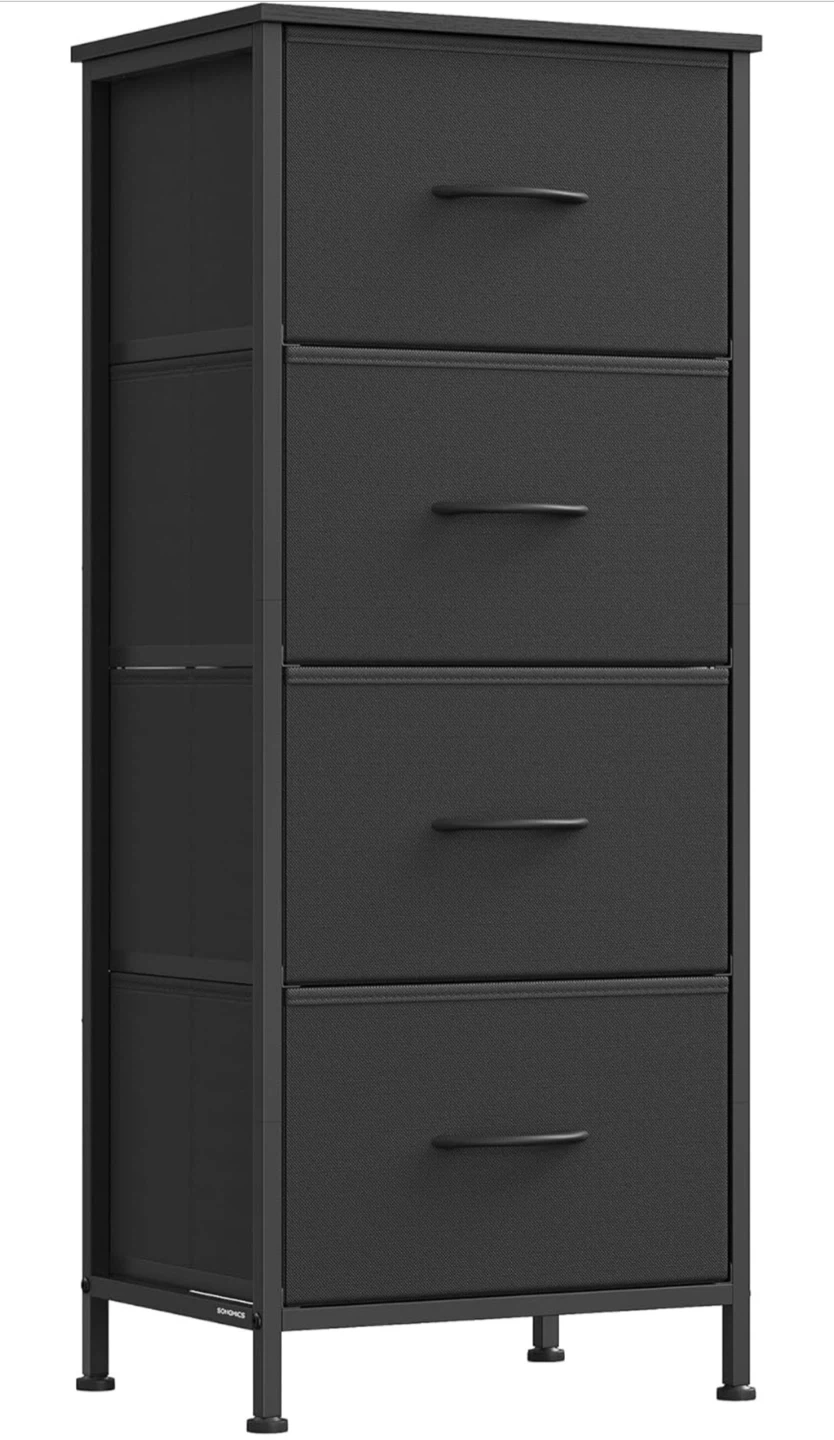 Brand new SONGMICS Dresser for Bedroom, Chest of Drawers, Steel, MDF, 4 Non-Woven Fabric Drawers, Storage Organizer Unit, Closet, Entryway, Ink Black and Ebony Black ULGS314BH03