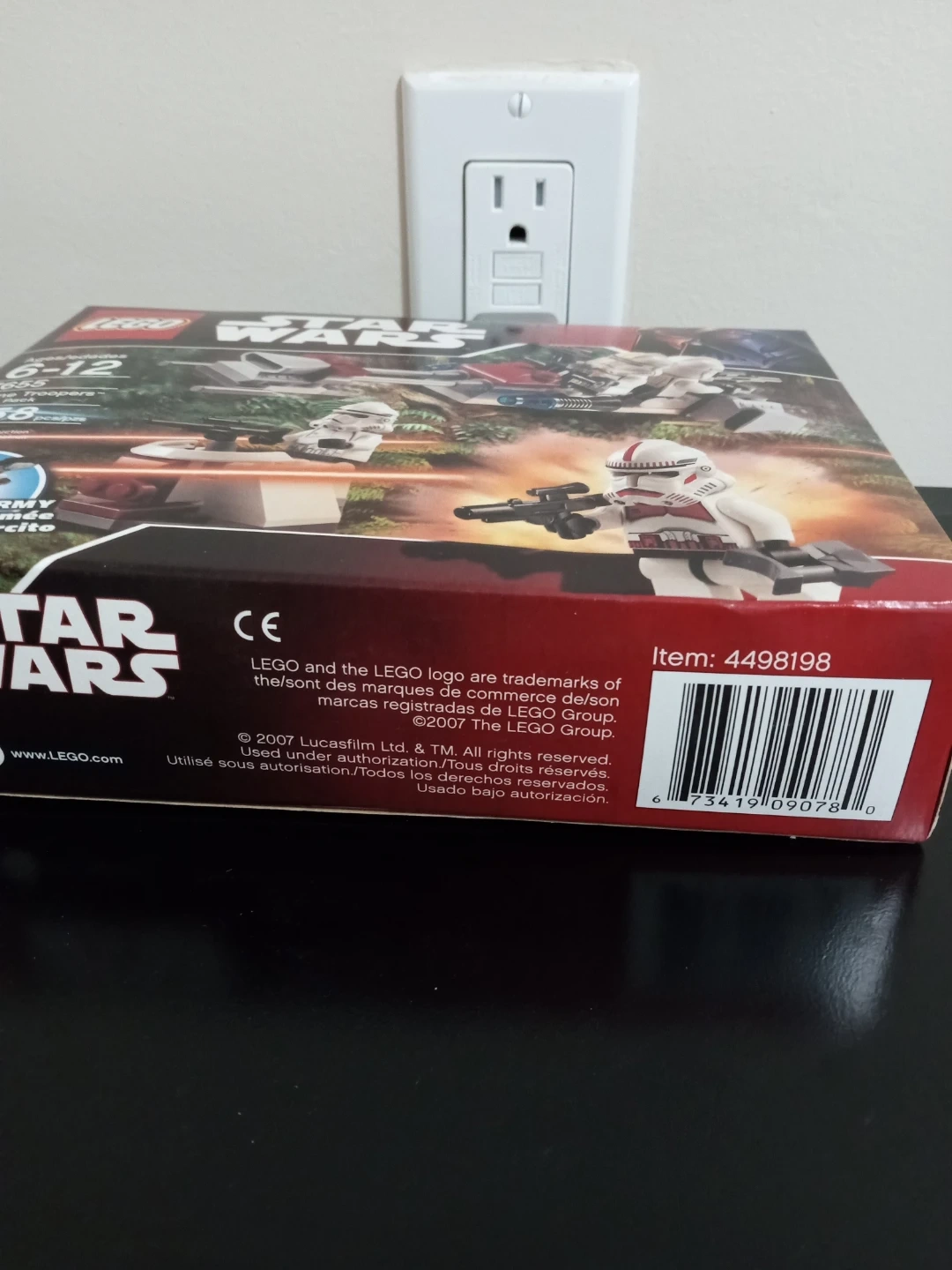 Selling a LEGO Star Wars set, the 7655 Clone Troopers battle pack! This set is recommended for ages 6-12 and includes 58 pieces to build your army. Never opened. Released 2007. Has 4 mini-figures included in box