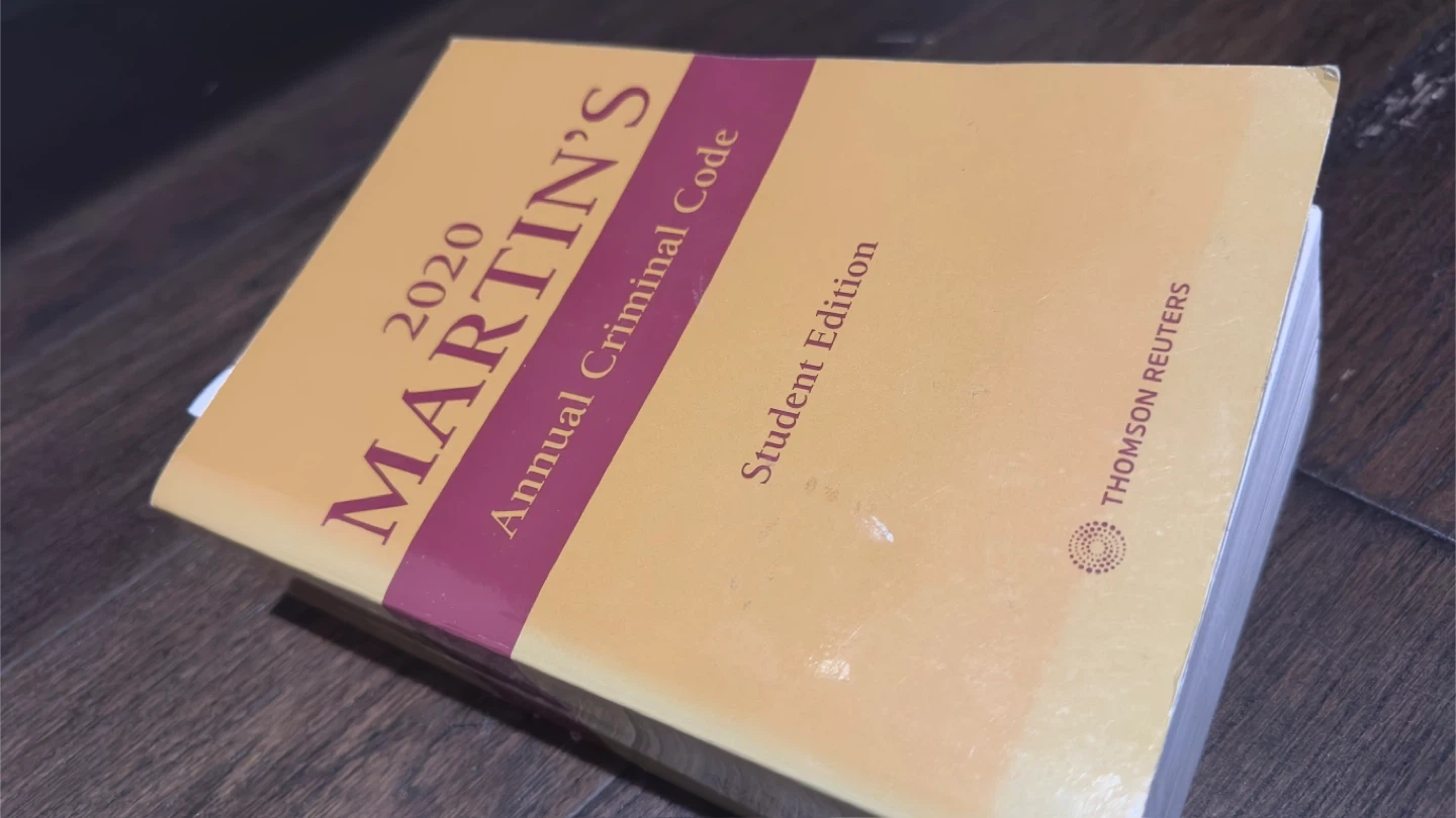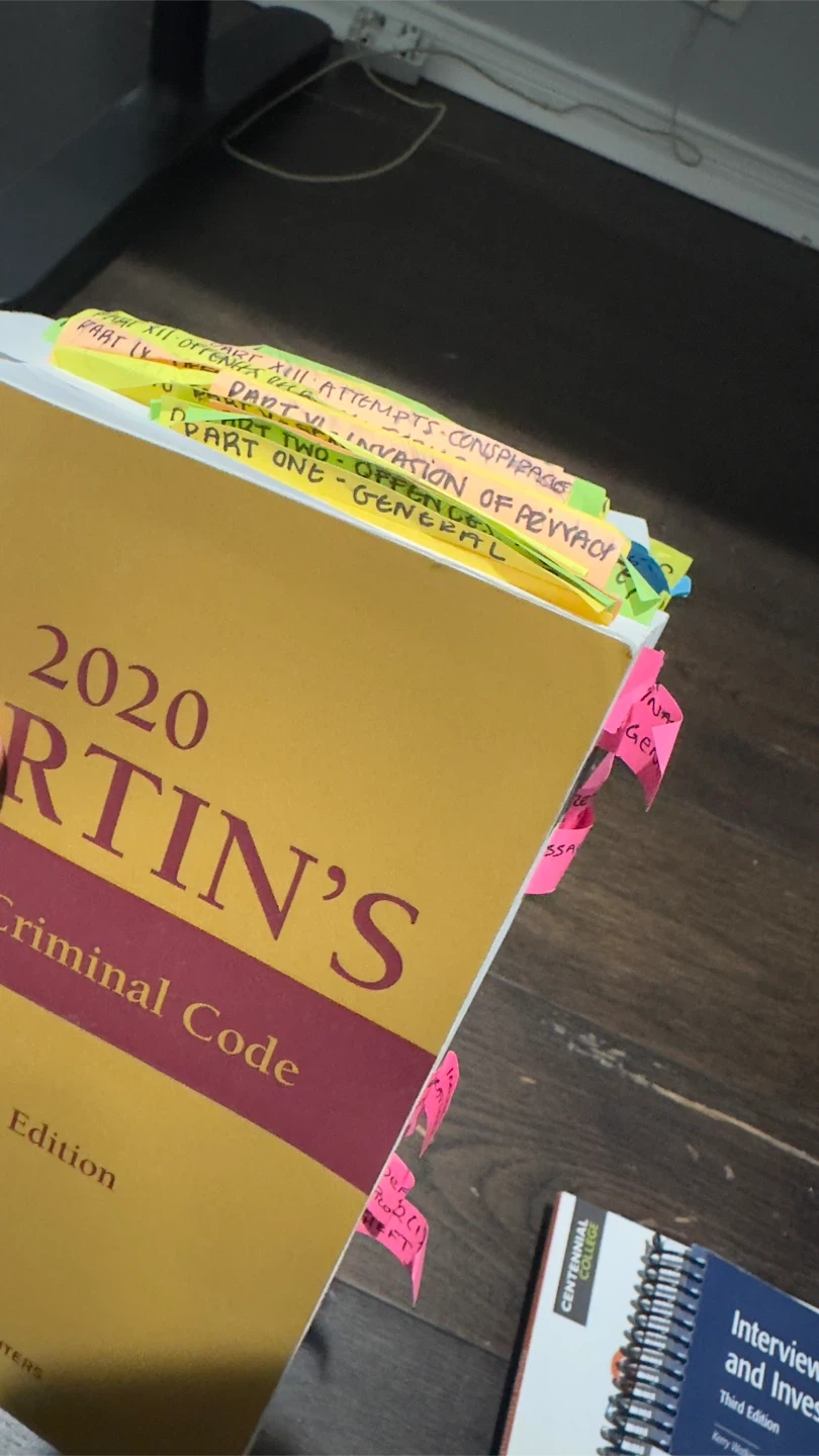 Selling Martin's Annual Criminal Code 2020 Edition. It has many important highlighting and sticky notes inside! Good for exam prep and memorization for those in the policing or law field!