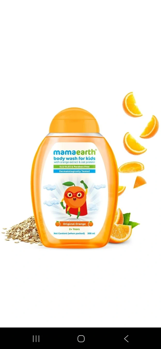 Selling Mamaearth body wash for kids! It's the Original Orange scent and comes in a 300ml bottle. It's made with orange extract and oat protein, and is dermatologically tested. Suitable for ages 2+
