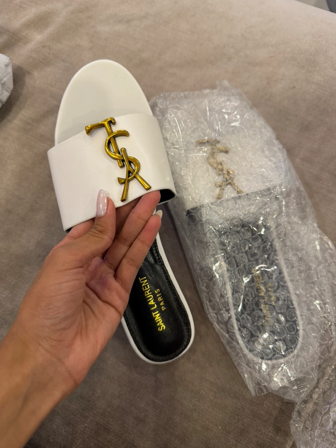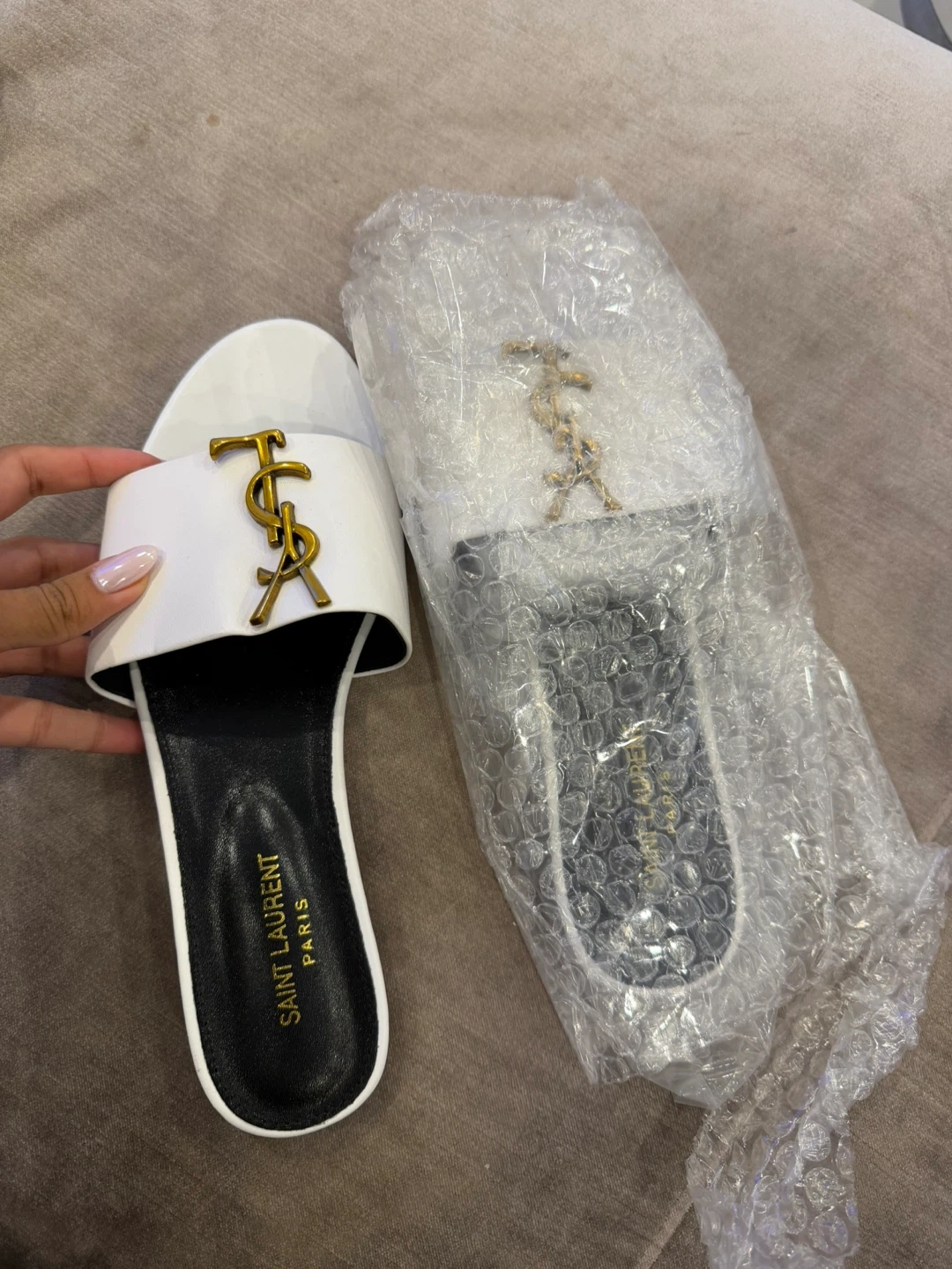 Buy & SellSaint Laurent White Slides - Size 41Saint Laurent White Slides - Size 41$150Selling a pair of Saint Laurent slides in white. They are a size 41. The slides feature the iconic YSL logo in gold.ConditionNewSize41BrandSaint LaurentWHERE TO MEETCheck LocationView MapSELLERverifiedSumWoodbridge15611 reviews0 chats·0 favorites·39 viewsSEND CHAT TO SELLERHi Sum! I’m interested in your listing.Hi Sum! I’m interested in your listing.Get the Karrot app to chatSign In to chat