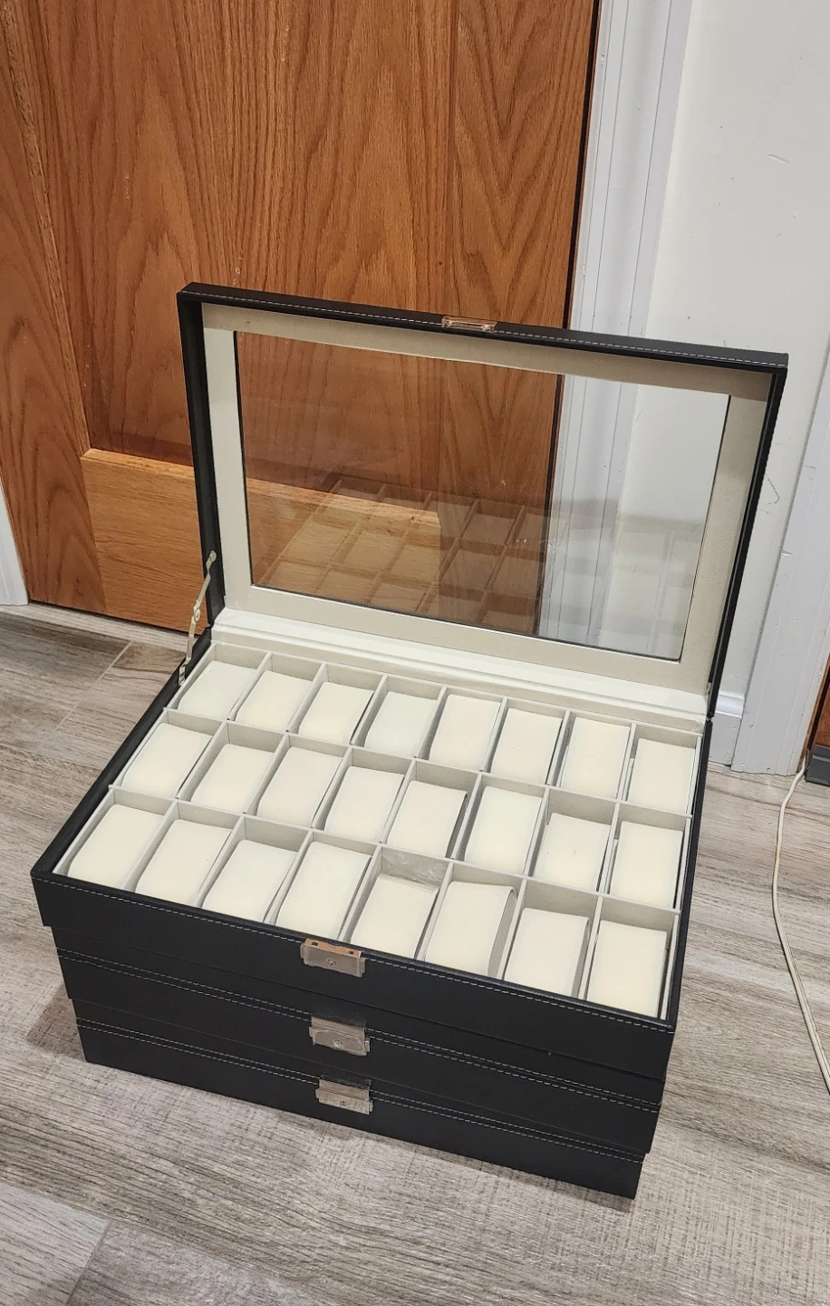 Selling a black Jewelry Box / Watch display case. It's perfect for storing and displaying your Beautifully Jewelry and watches. The case is in excellent condition!
