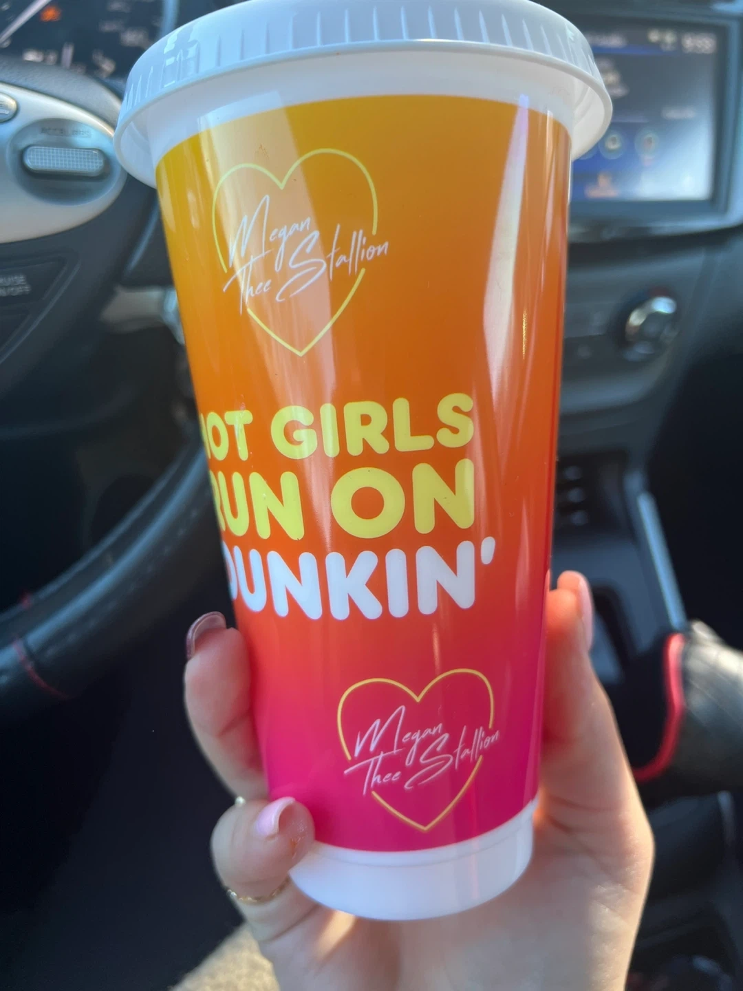 Selling a Dunkin' Hype Cup designed in collaboration with Megan Thee Stallion! It's a fun, colorful cup perfect for your favorite iced drinks. Great for any Dunkin' or Megan Thee Stallion fan