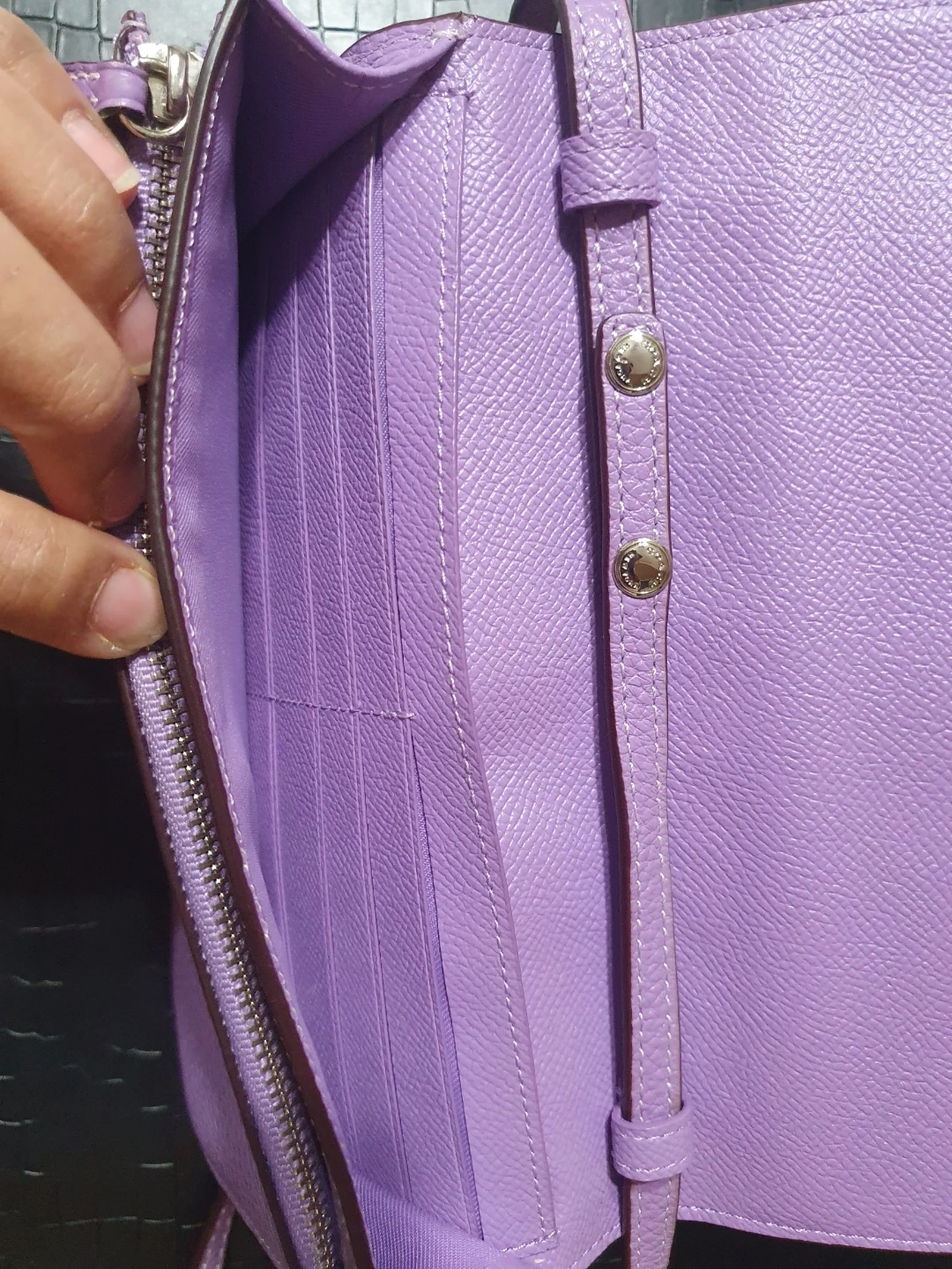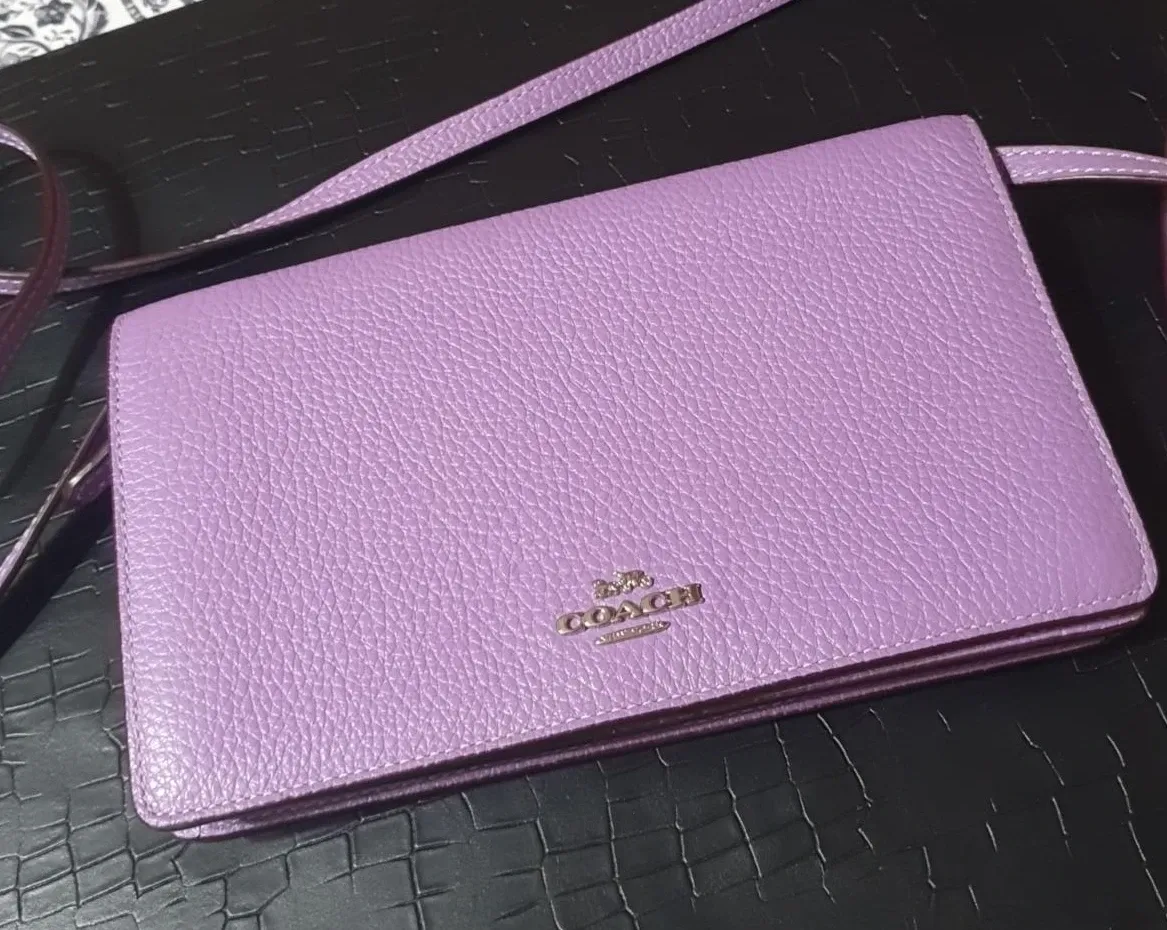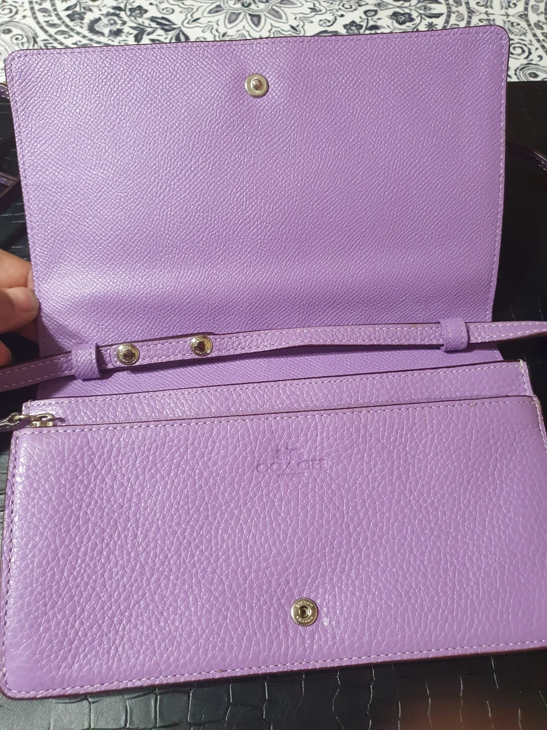 Selling a lovely Coach crossbody wallet in a beautiful lilac colour! It's made of leather and has a convenient strap for carrying it around. Also there are lots of space inside for cards and phone .