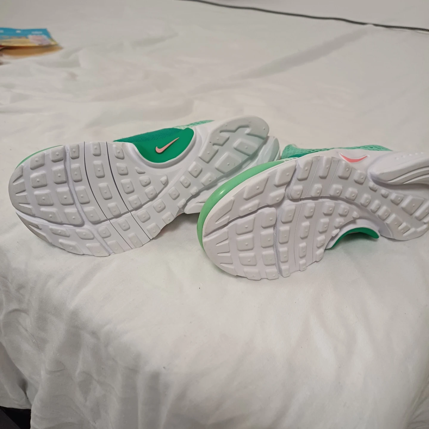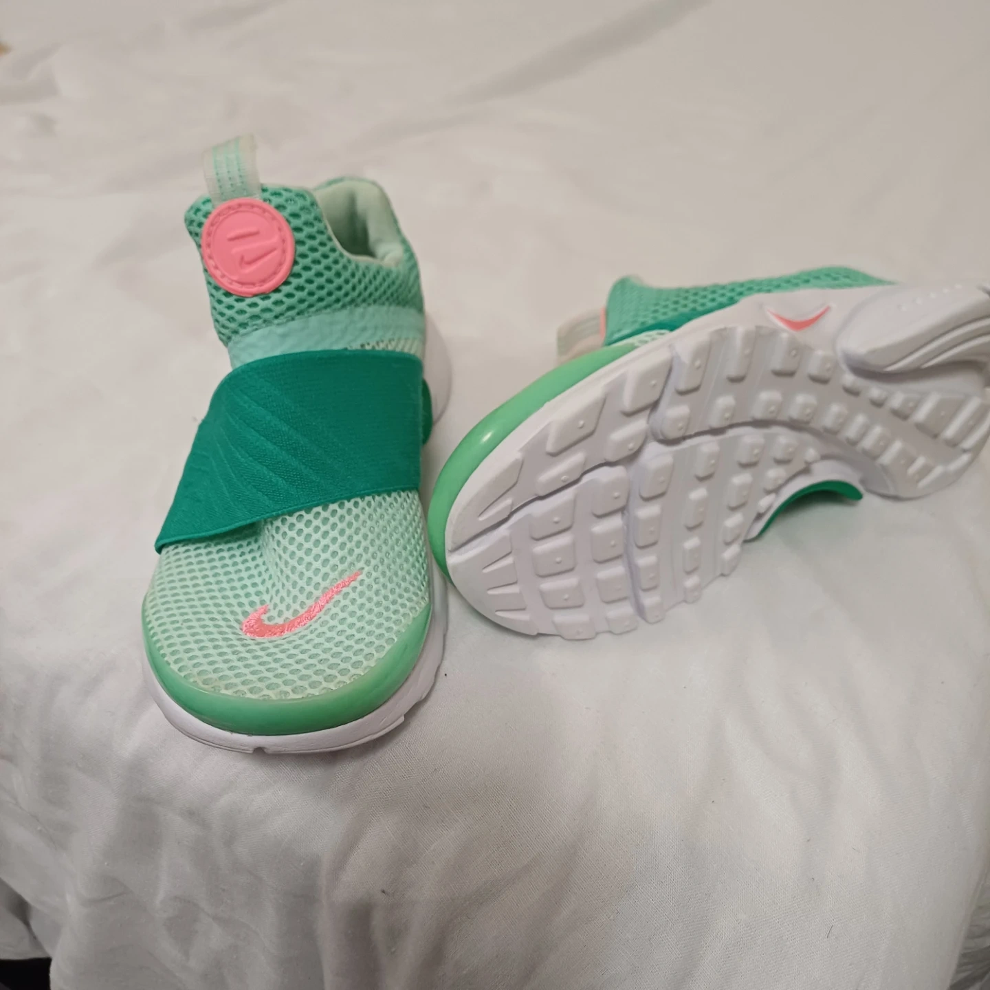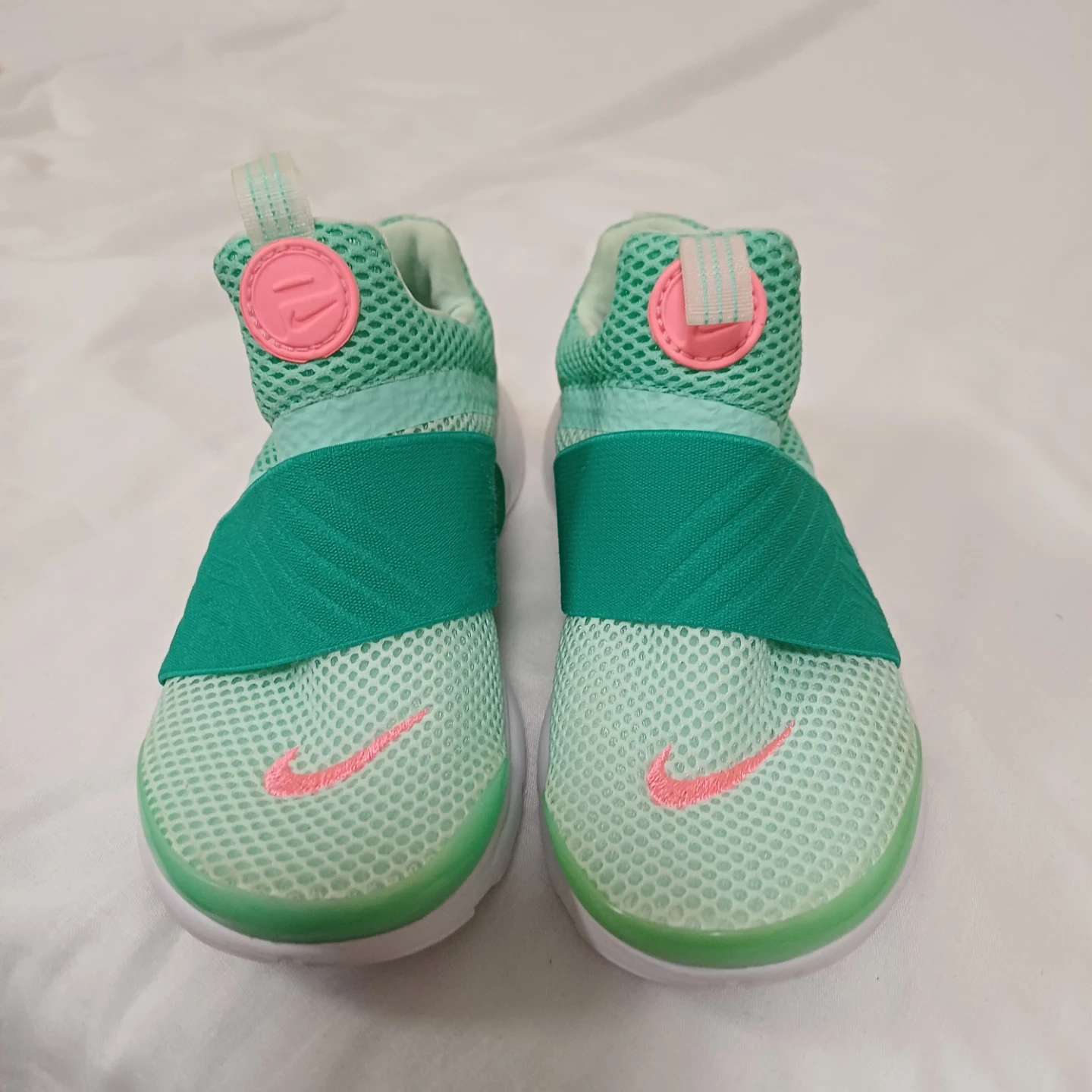 These Nike Dynamo Go toddler shoes are in great condition! They feature a cool green color scheme with pink accents. Perfect for your little one to run and play in