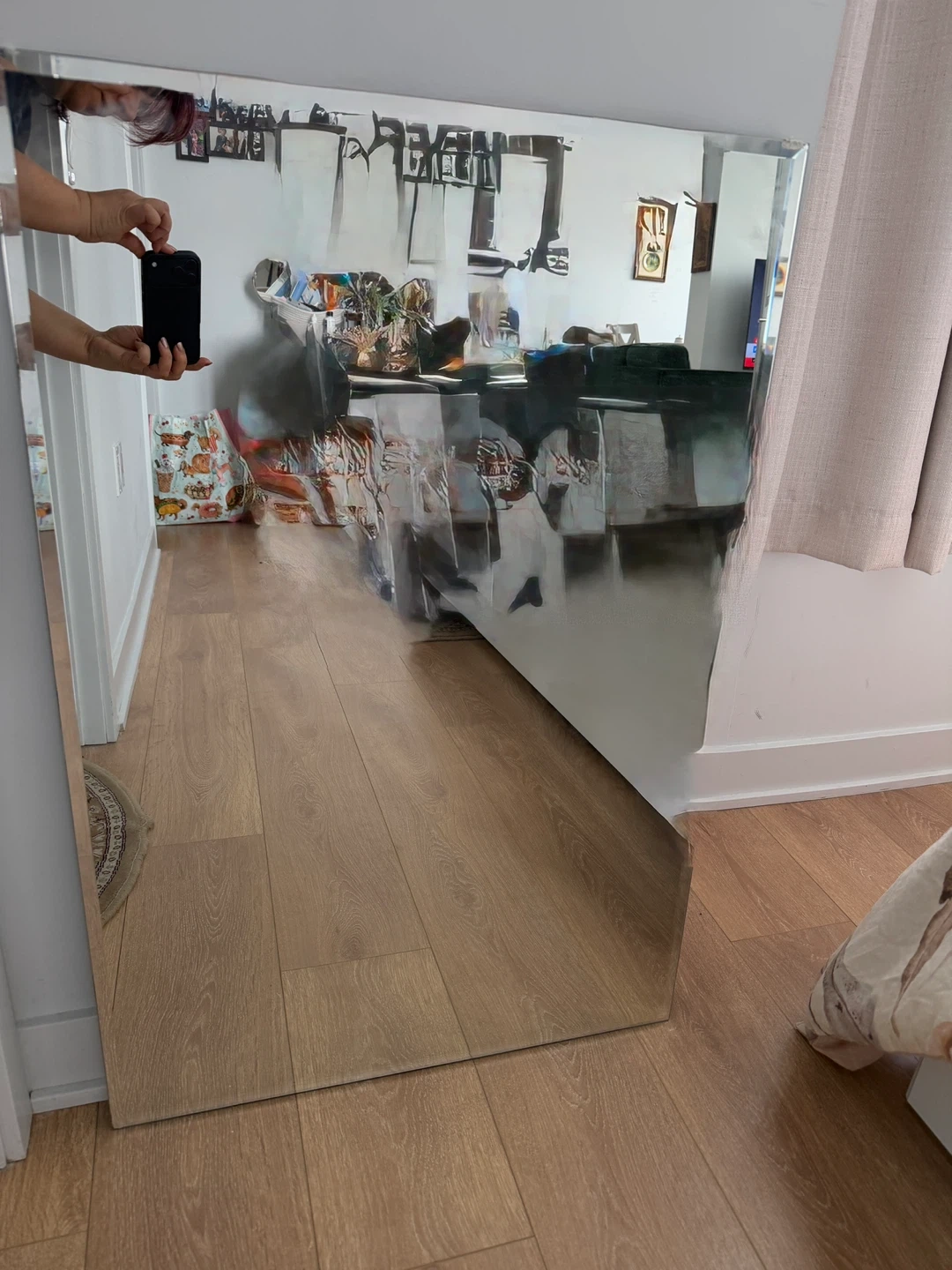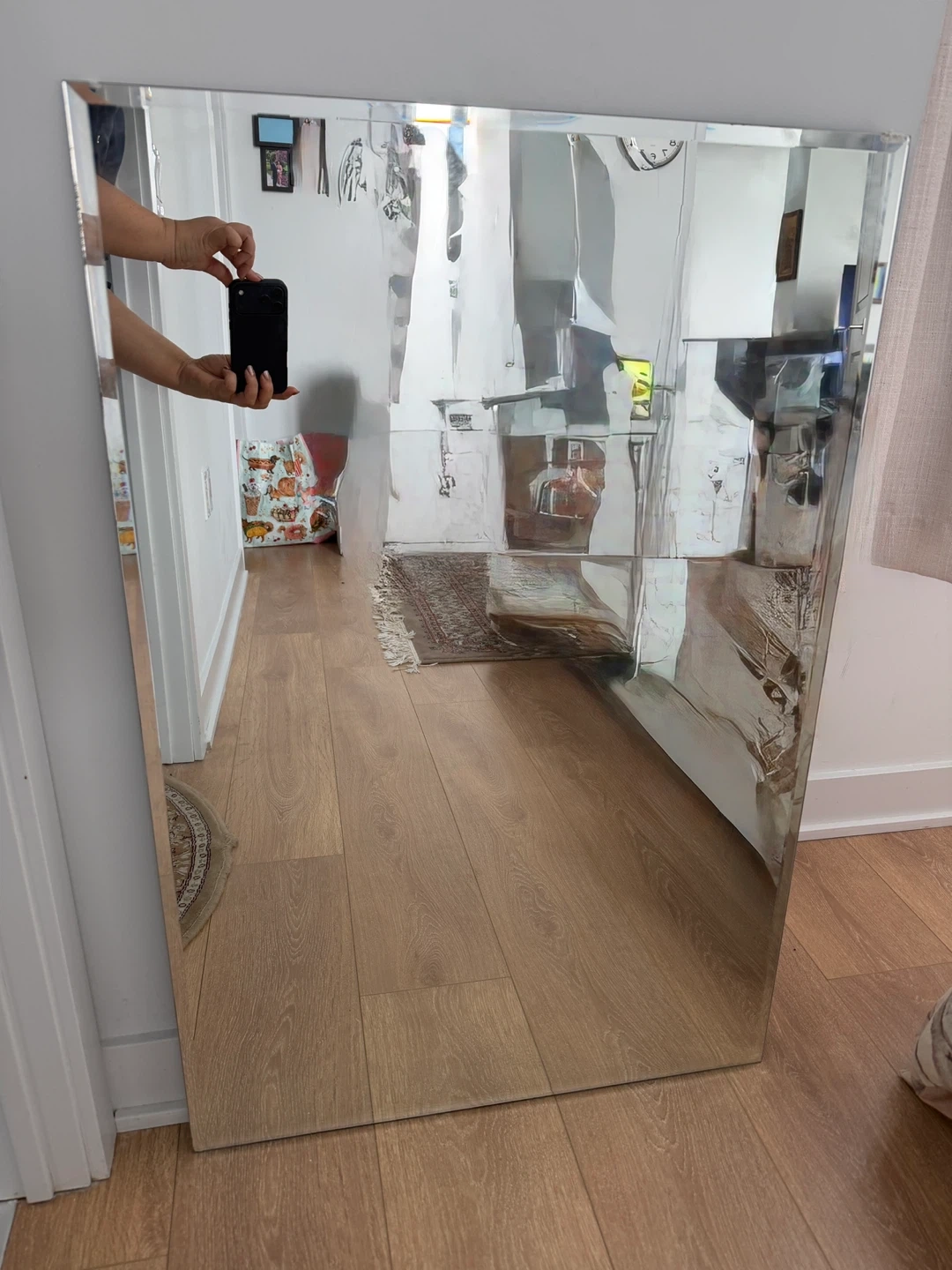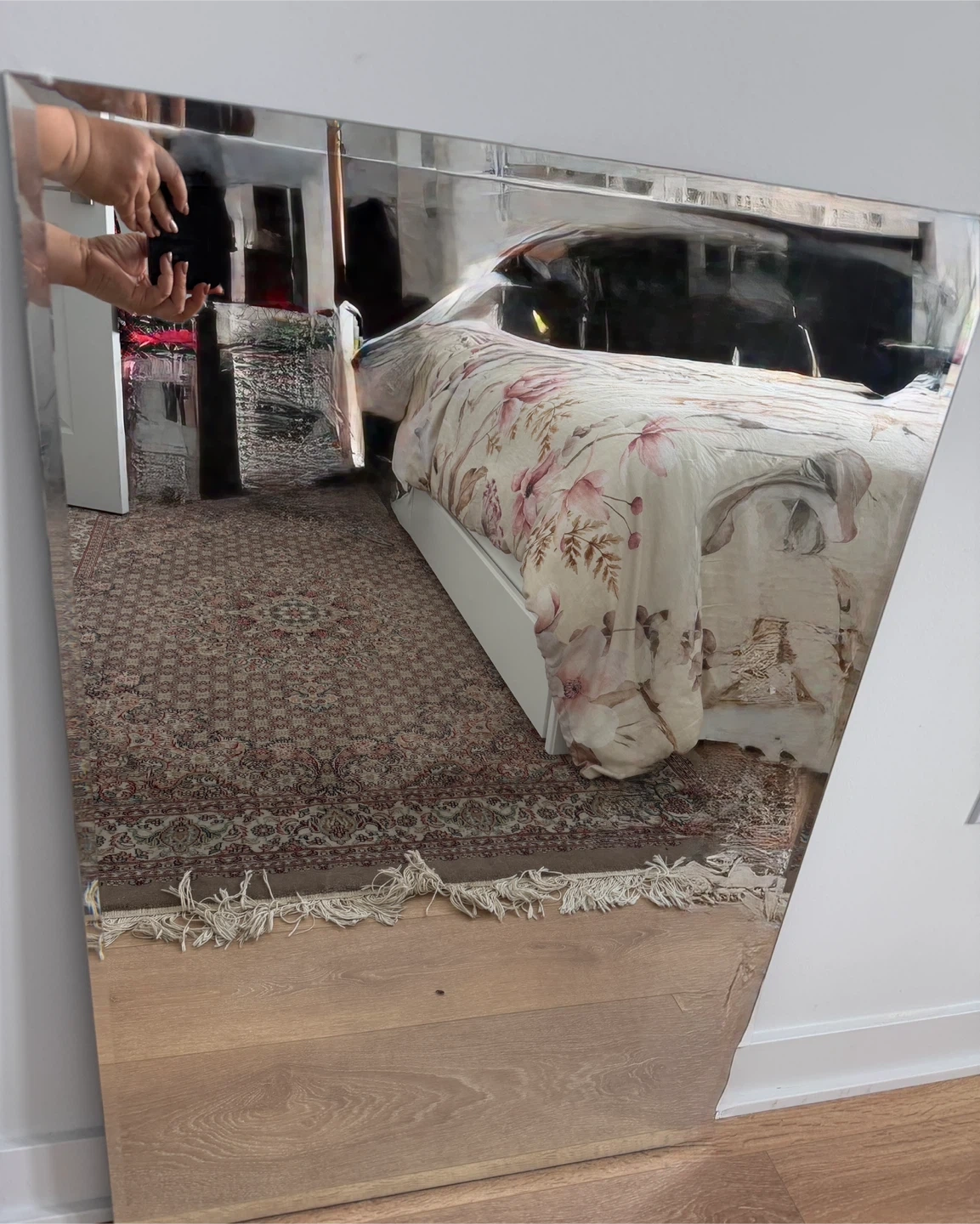 Selling a large frameless mirror. It's in great condition and ready to brighten up any room! It would look great in an entryway or bedroom