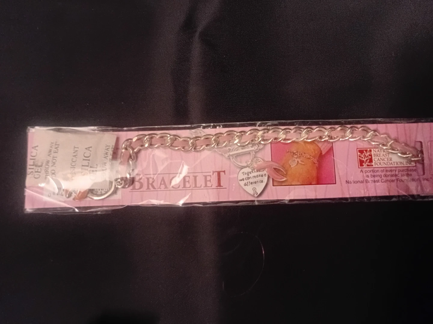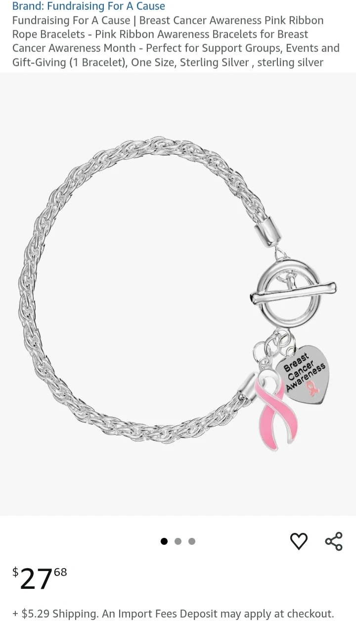 This is a Fundraising For A Cause Breast Cancer Awareness Pink Ribbon Rope Bracelet. It's perfect for support groups, events, and gift-giving. The bracelet is one size and made of sterling silver. A portion of every purchase is being donated to the National Breast Cancer Foundation, Inc