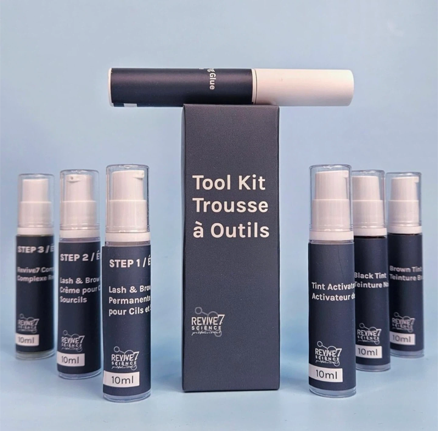 Revive7 Science Professional 4-in-1 kit: Lift, Laminate, Tint, and Revive includes everything needed to enhance lashes and brows. Perform Lash Lifts, Brow Laminations, and Lash and Brow Tints. Revives lashes and brows, too. Each product in this kit is infused with Revive7 Science's triple-award winning formula to nourish and strengthen lashes and brows with every step. Lash Lift and Brow Laminations using Revive7 Science Professional 4-in-1 system last up to eight weeks. From start to finish, your full application time for all treatments is less than 60 minutes offering your clients gentle, fast, and beautiful results. Up to 40 applications.
