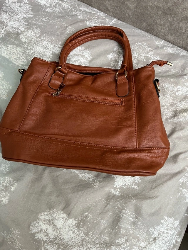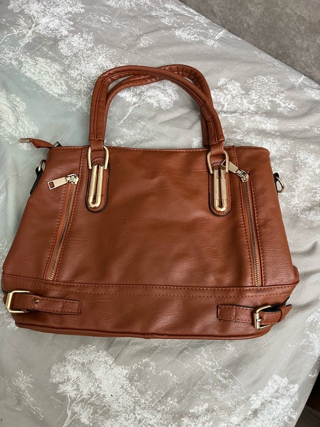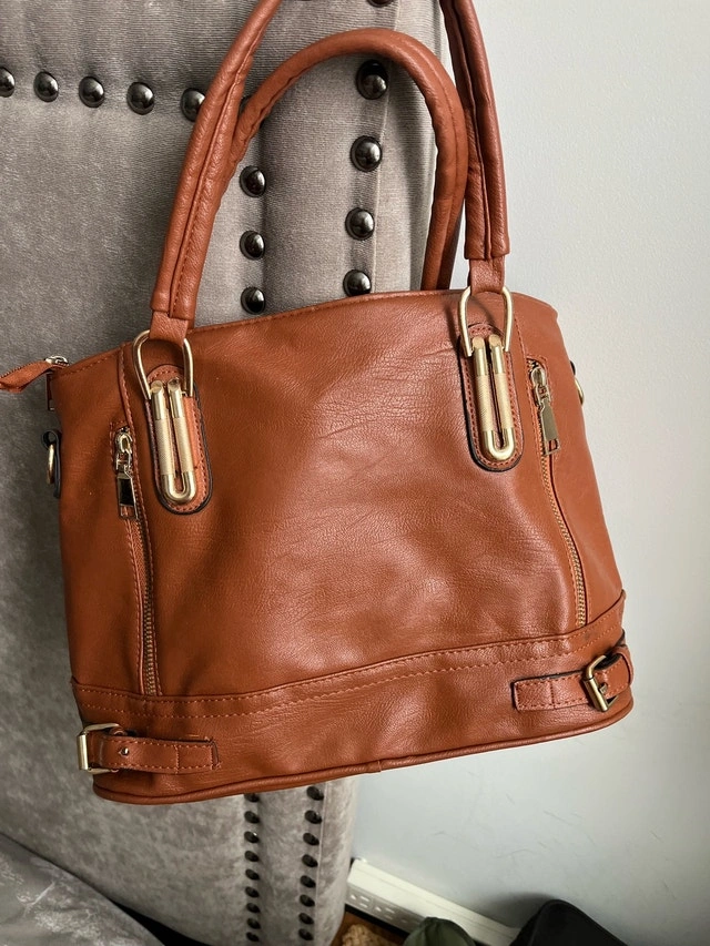 This brown purse is stylish and practical for everyday use. Although it's in used condition, it remains functional and fashionable, ready to carry your essentials with flair.