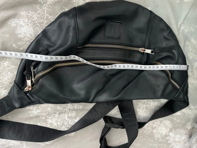 This LK Bennett bum bag is perfect for keeping your essentials close! It's used but in good condition and has a sleek black design with multiple zipper pockets. Measures about 30 cm in length and 20 cm in height.