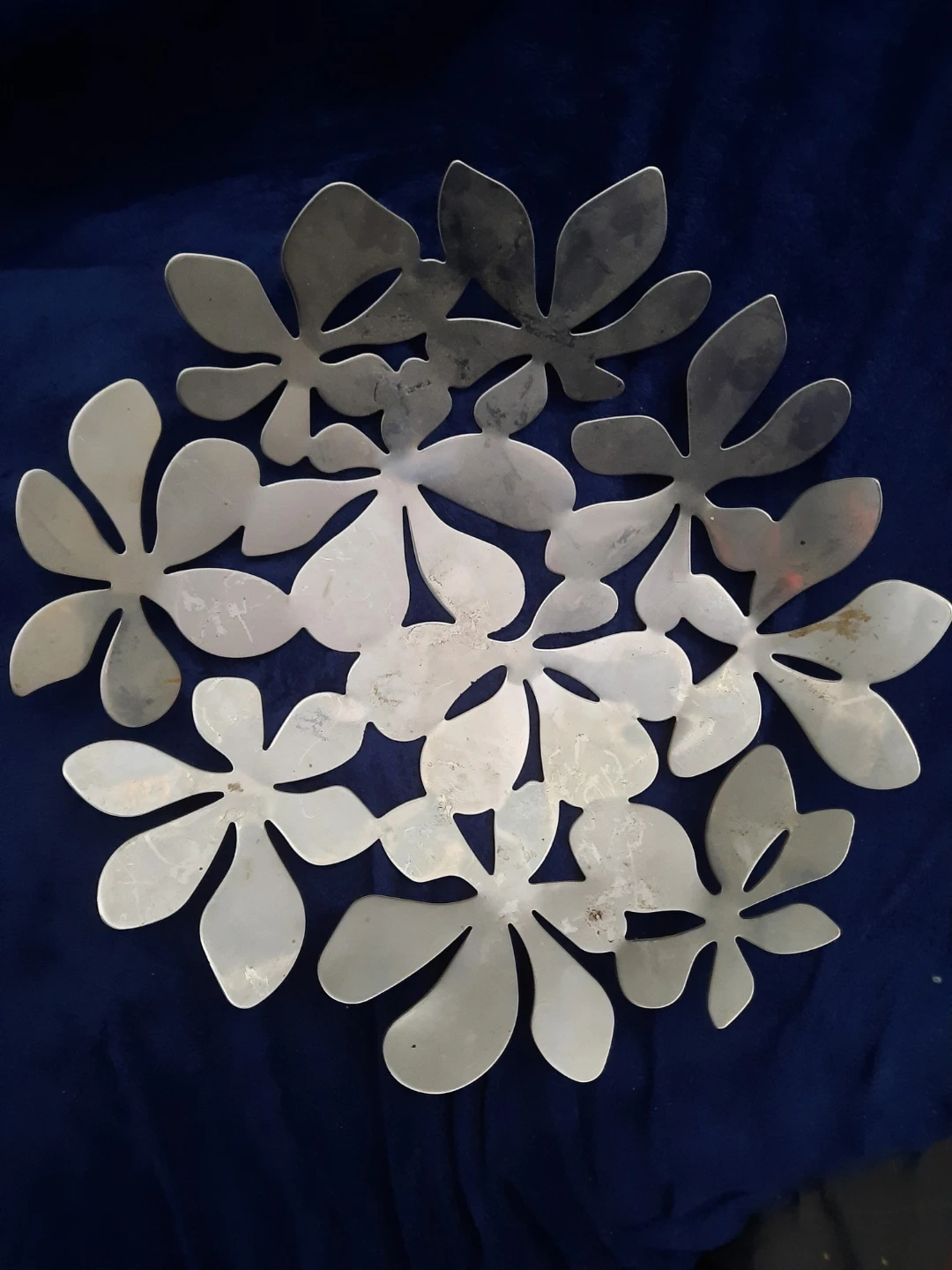 Here's a lovely metal decorative bowl featuring a floral design! It would be a great addition to any home decor. It's in decent condition, could use a scrub or would be fun to paint! Heavy material.