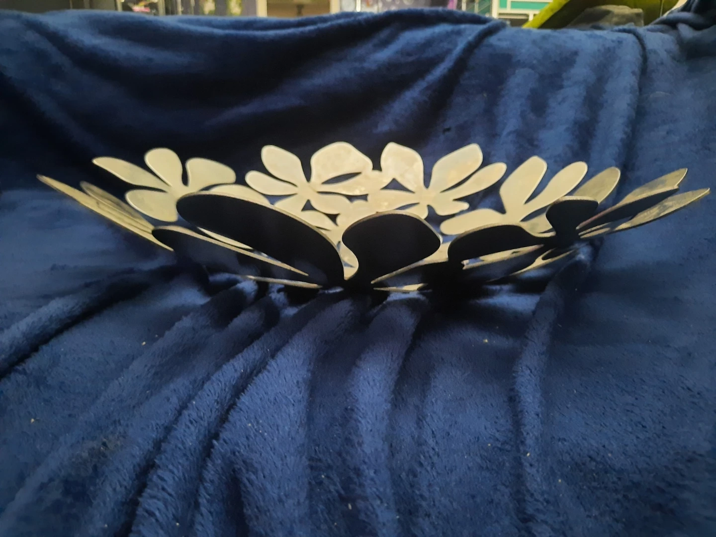 Here's a lovely metal decorative bowl featuring a floral design! It would be a great addition to any home decor. It's in decent condition, could use a scrub or would be fun to paint! Heavy material.