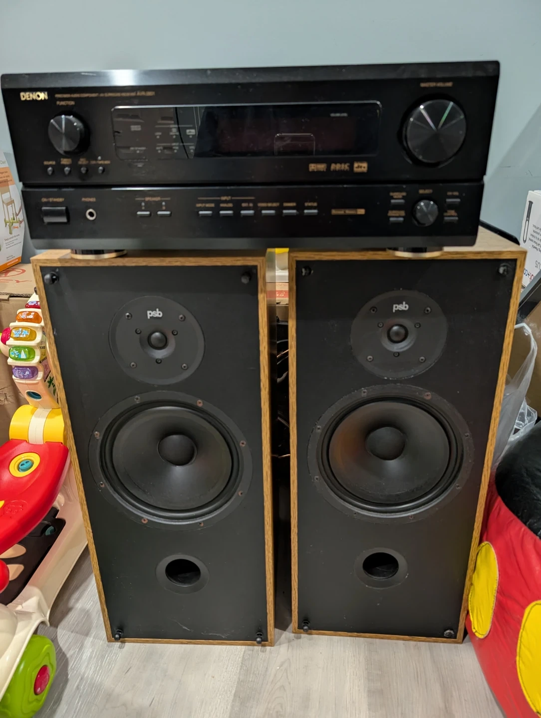 Selling a Denon AVR-2801 receiver paired with PSB 500 speakers. Great sound quality for your home entertainment setup! Feel free yo ask any questions