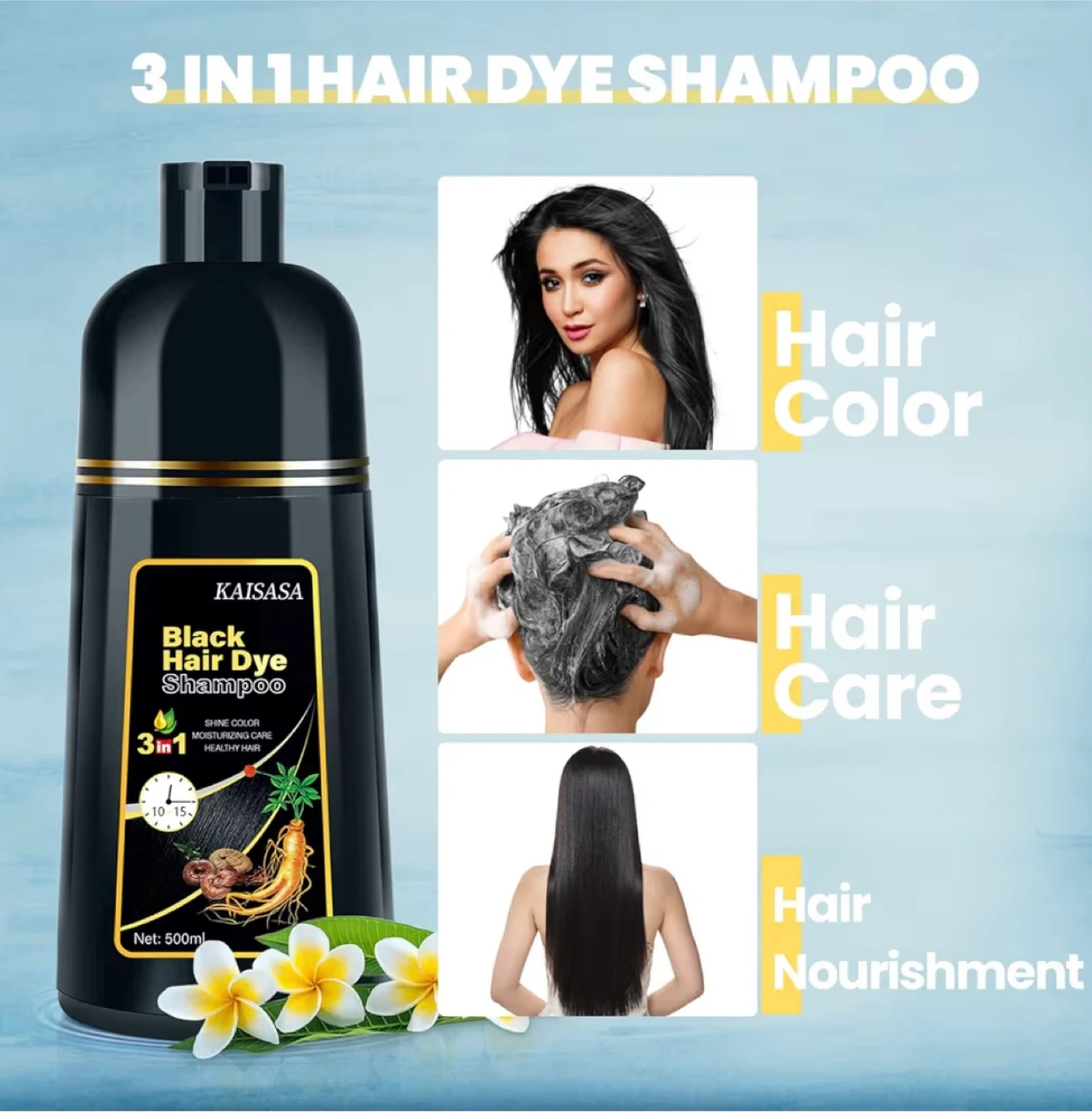 KAISASA Black Hair Dye Shampoo 500ml