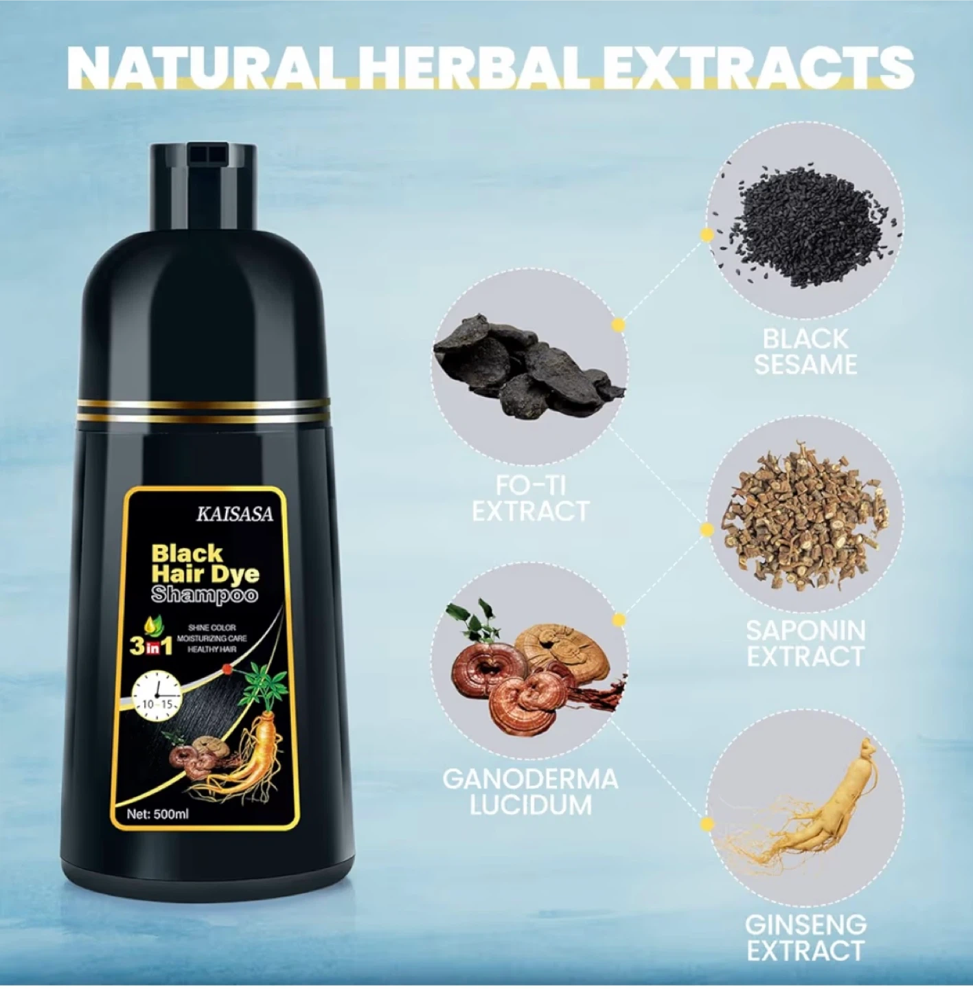 KAISASA Black Hair Dye Shampoo 500ml