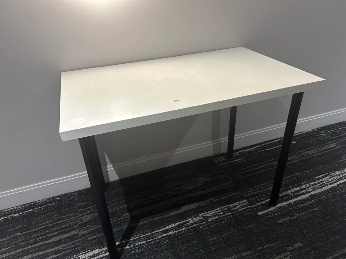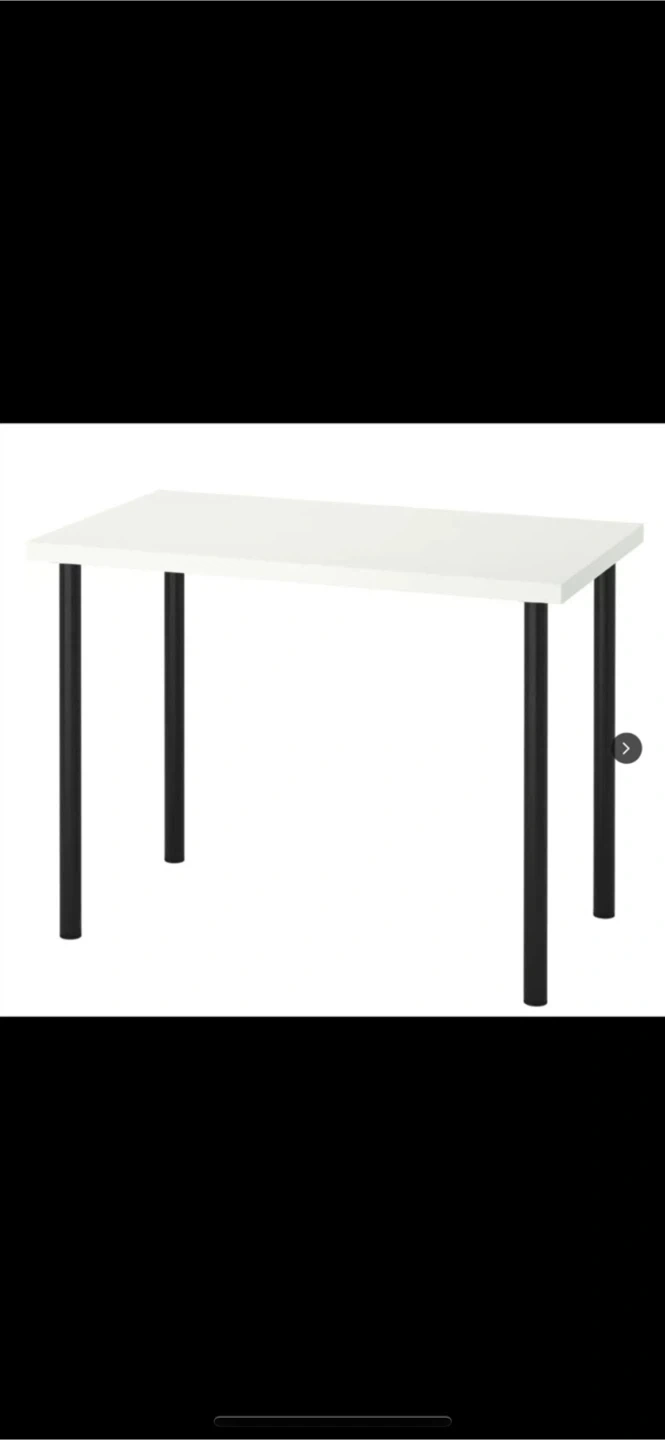 Selling a LINNMON tabletop with Adils legs. It's a simple and clean desk, perfect for a home office or study space. The tabletop is white, and the legs are black.