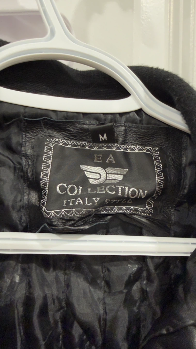 Selling a stylish black leather jacket from EA Collection Italy Style. It's a size medium and in great shape. This jacket is perfect for adding a touch of Italian flair to your wardrobe!