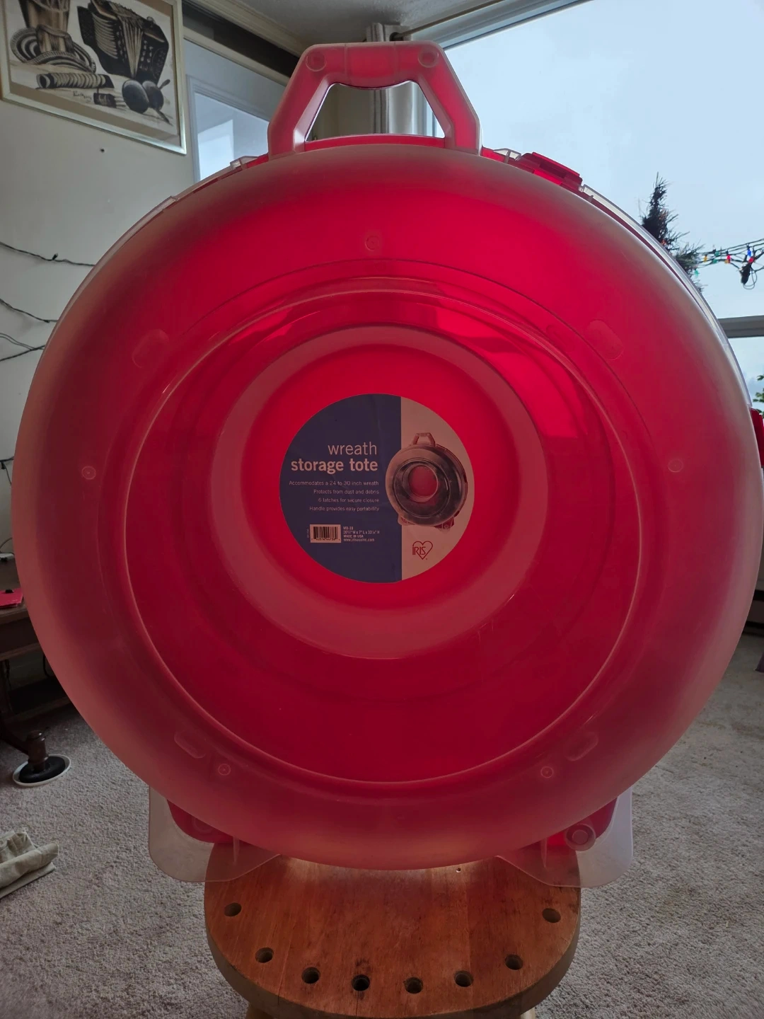 Keep your wreaths safe and sound with this IRIS wreath storage tote! It accommodates wreaths from 24 to 30 inches. It also features 6 latches for secure closure and a handle for easy portability