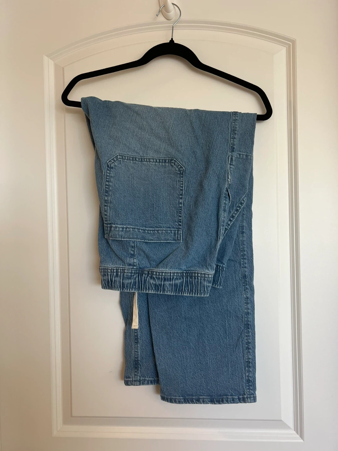 Selling a pair of Buffalo David Bitton jeans in size XL. They're a light wash denim and in great condition! The jeans feature a comfortable elastic waistband with a drawstring.