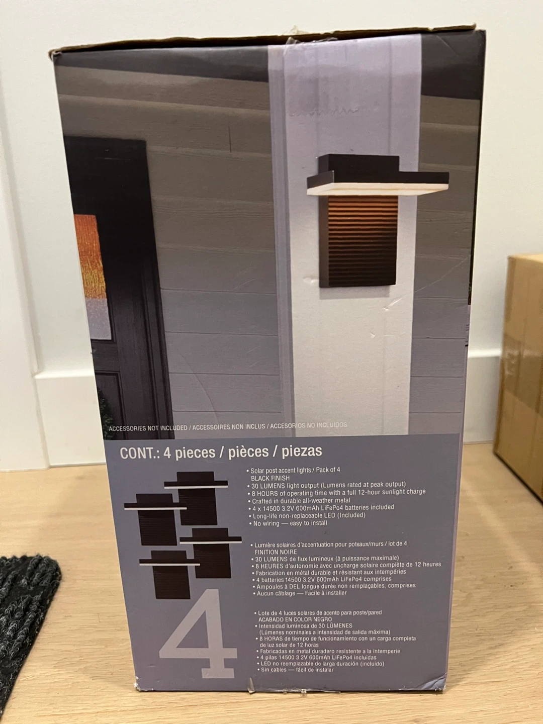 Selling a set of 4 Naturally Solar post/wall accent lights in black finish! These lights are perfect for adding a touch of ambiance to your outdoor space.