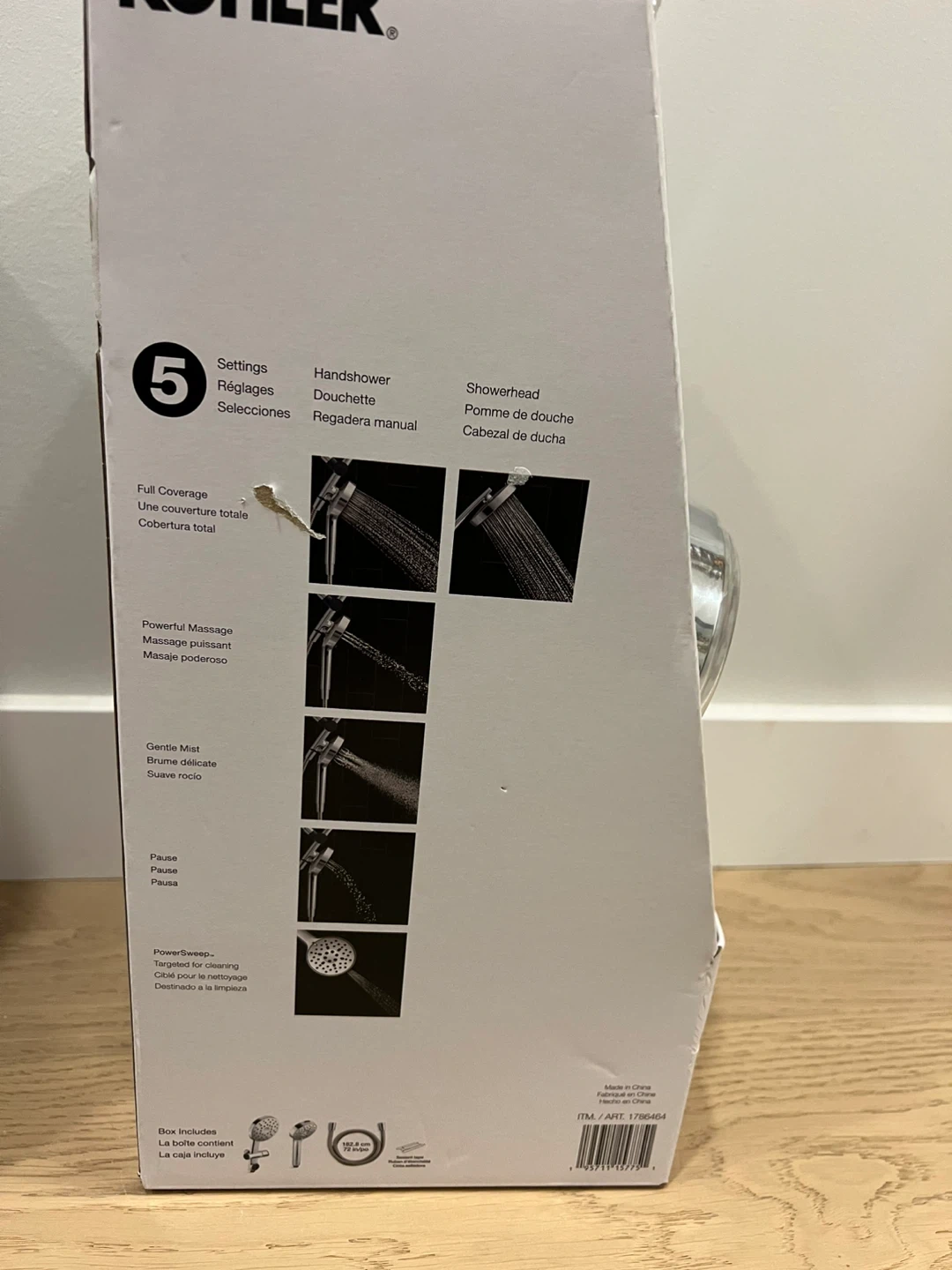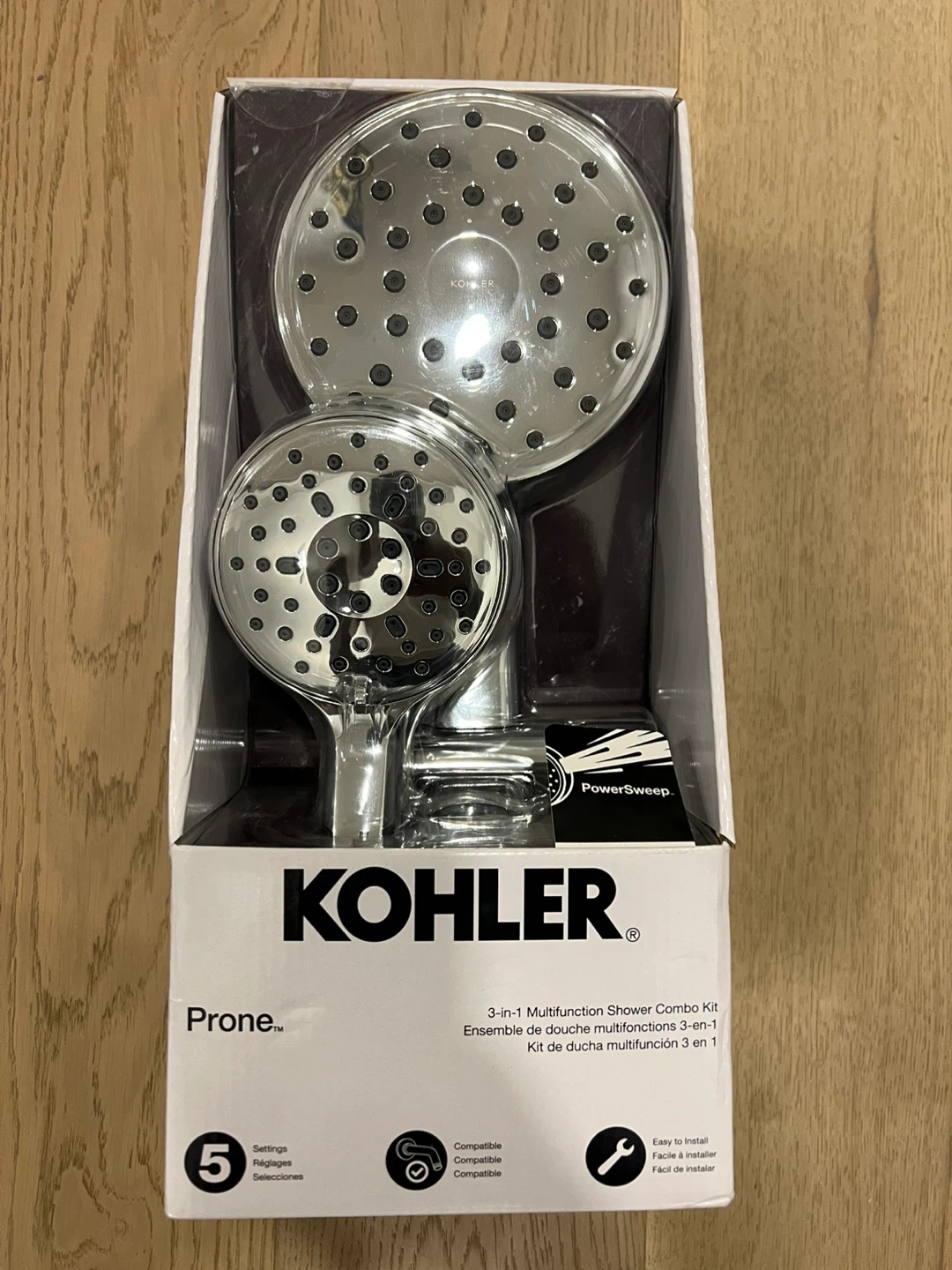 Selling a KOHLER Prone 3-in-1 multifunction shower combo kit with a polished chrome finish! It includes both a showerhead and a handshower. The box is included! This kit features 5 spray settings, including full coverage, powerful massage, gentle mist, and pause