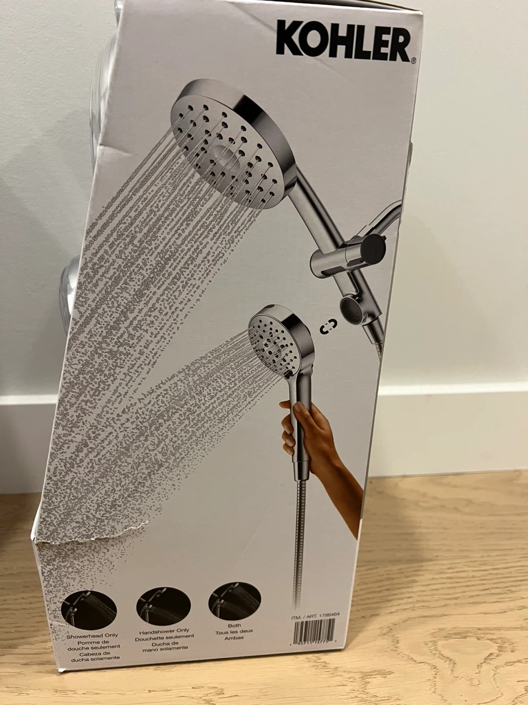Selling a KOHLER Prone 3-in-1 multifunction shower combo kit with a polished chrome finish! It includes both a showerhead and a handshower. The box is included! This kit features 5 spray settings, including full coverage, powerful massage, gentle mist, and pause