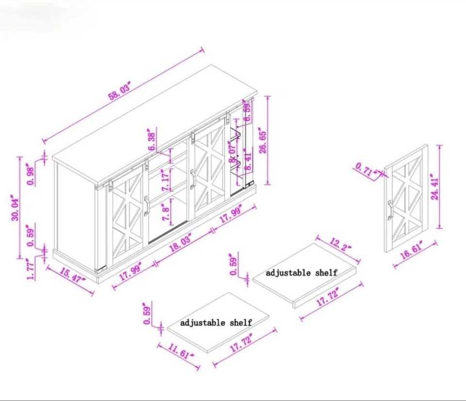 Farmhouse TV Stand / Sideboard / Credenza – Barn Door | Fits TVs