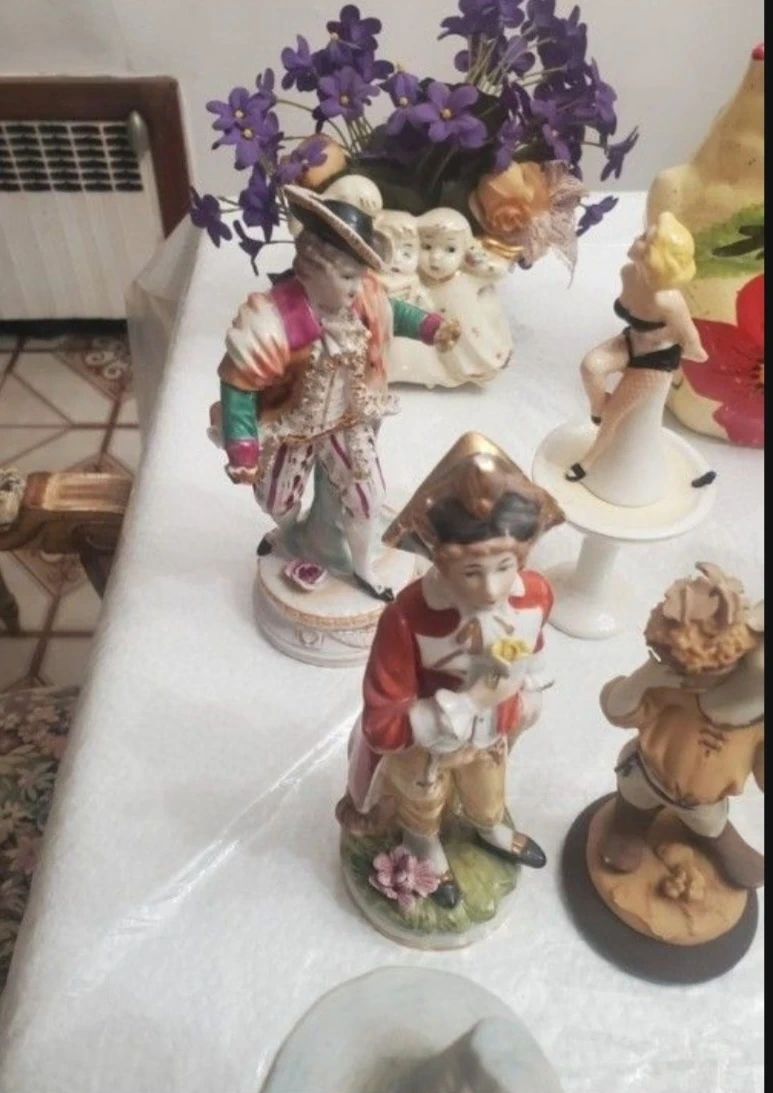 25 porcelain and ceramic vintage figurines. paid between $20 for the smaller ones, $50 for the medium size and $75 each for the 3 larger ones.
