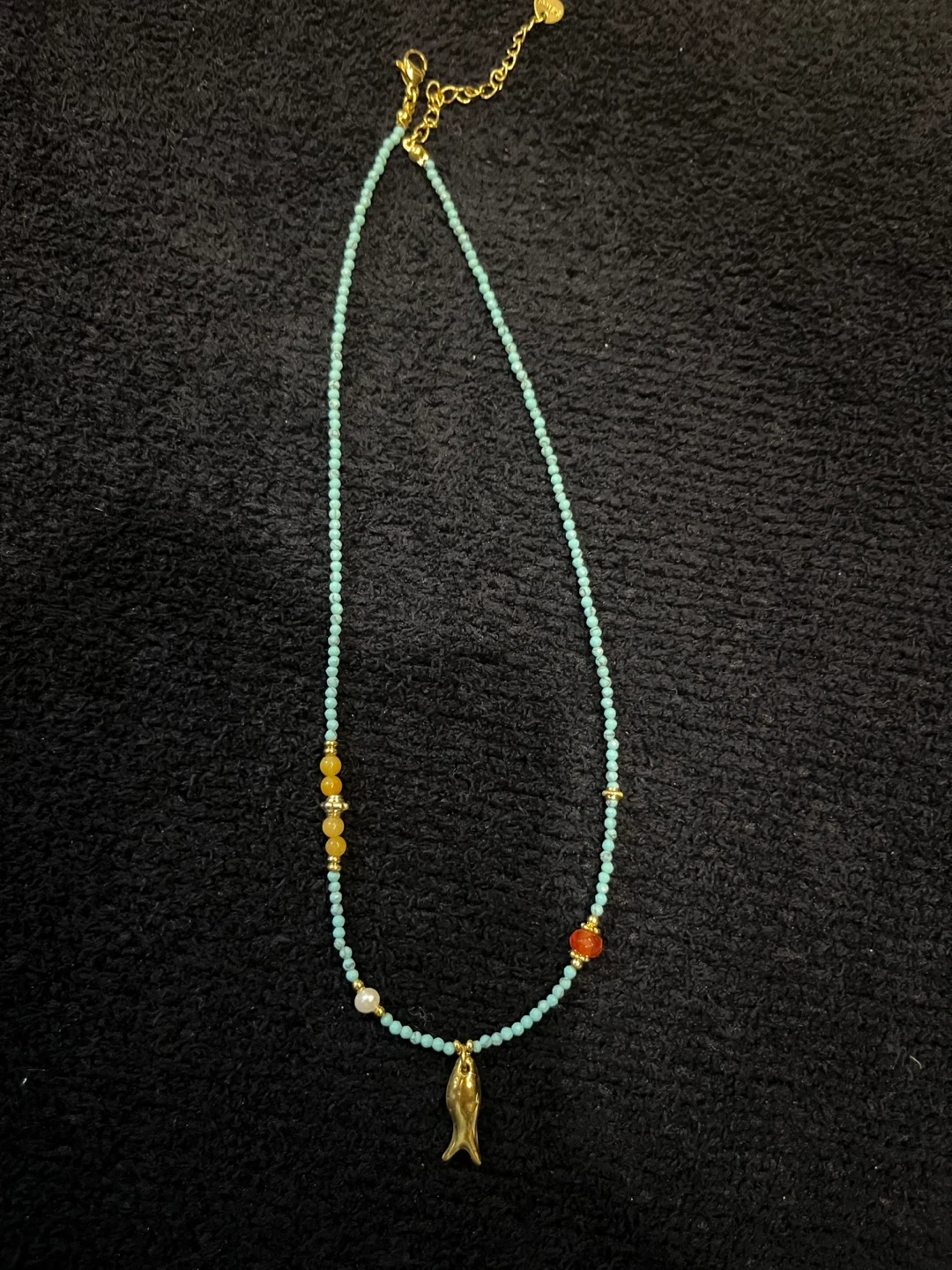 Beaded Necklace with Golden Fish Pendant