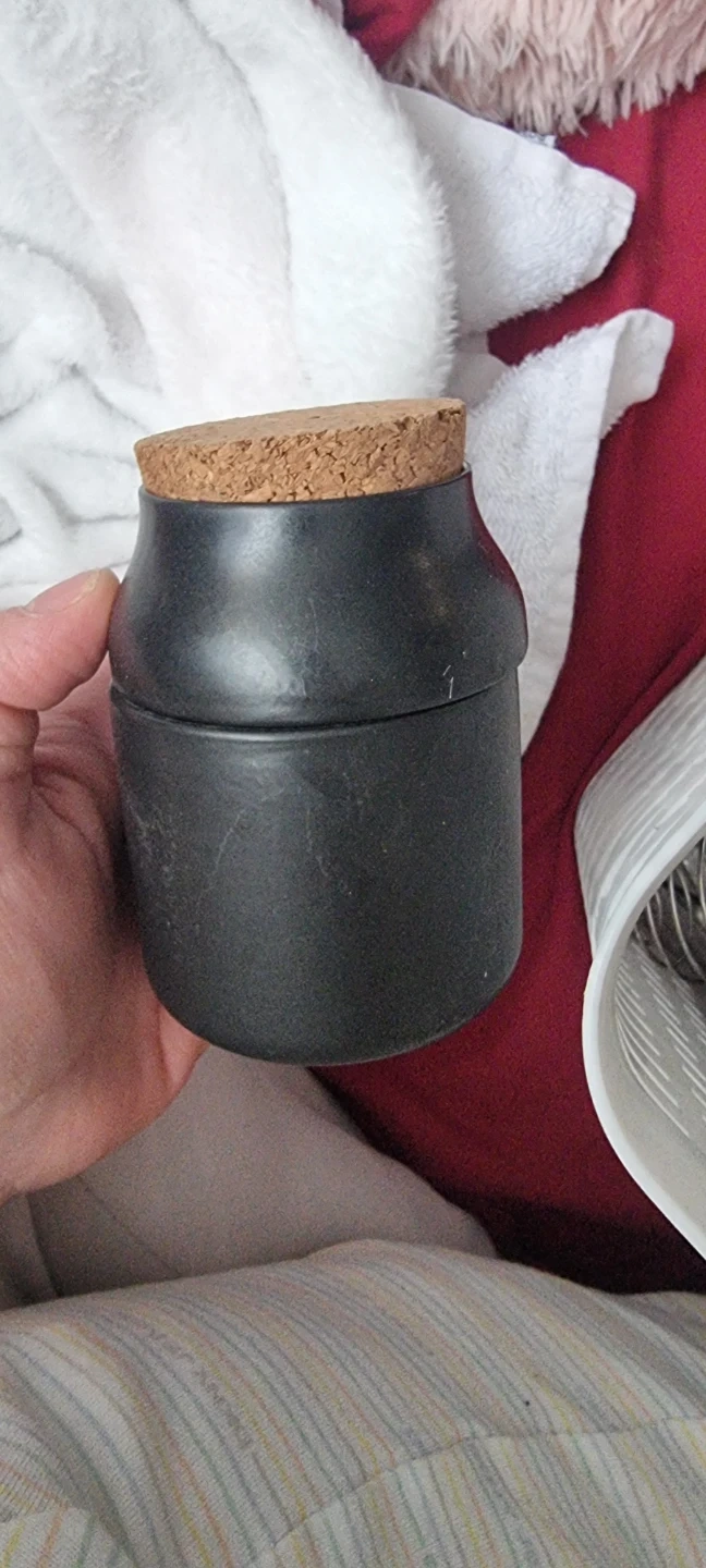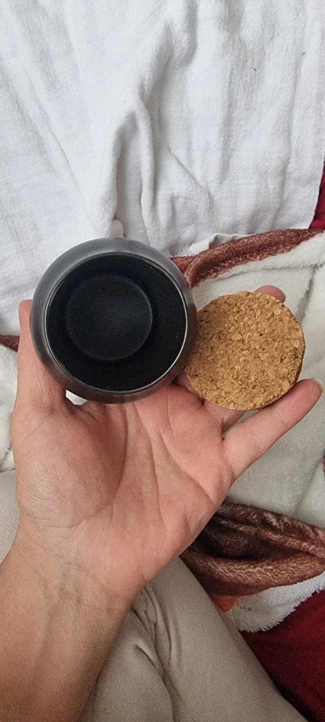 Features a top storage compartment and a coarse grinding pattern at the base.