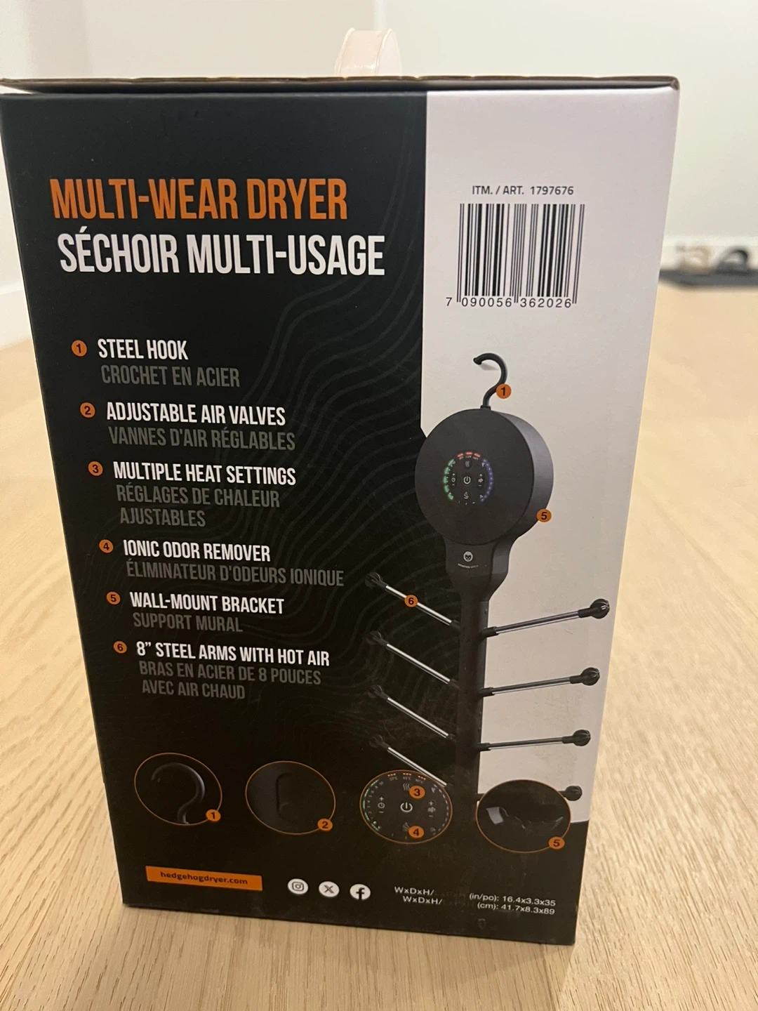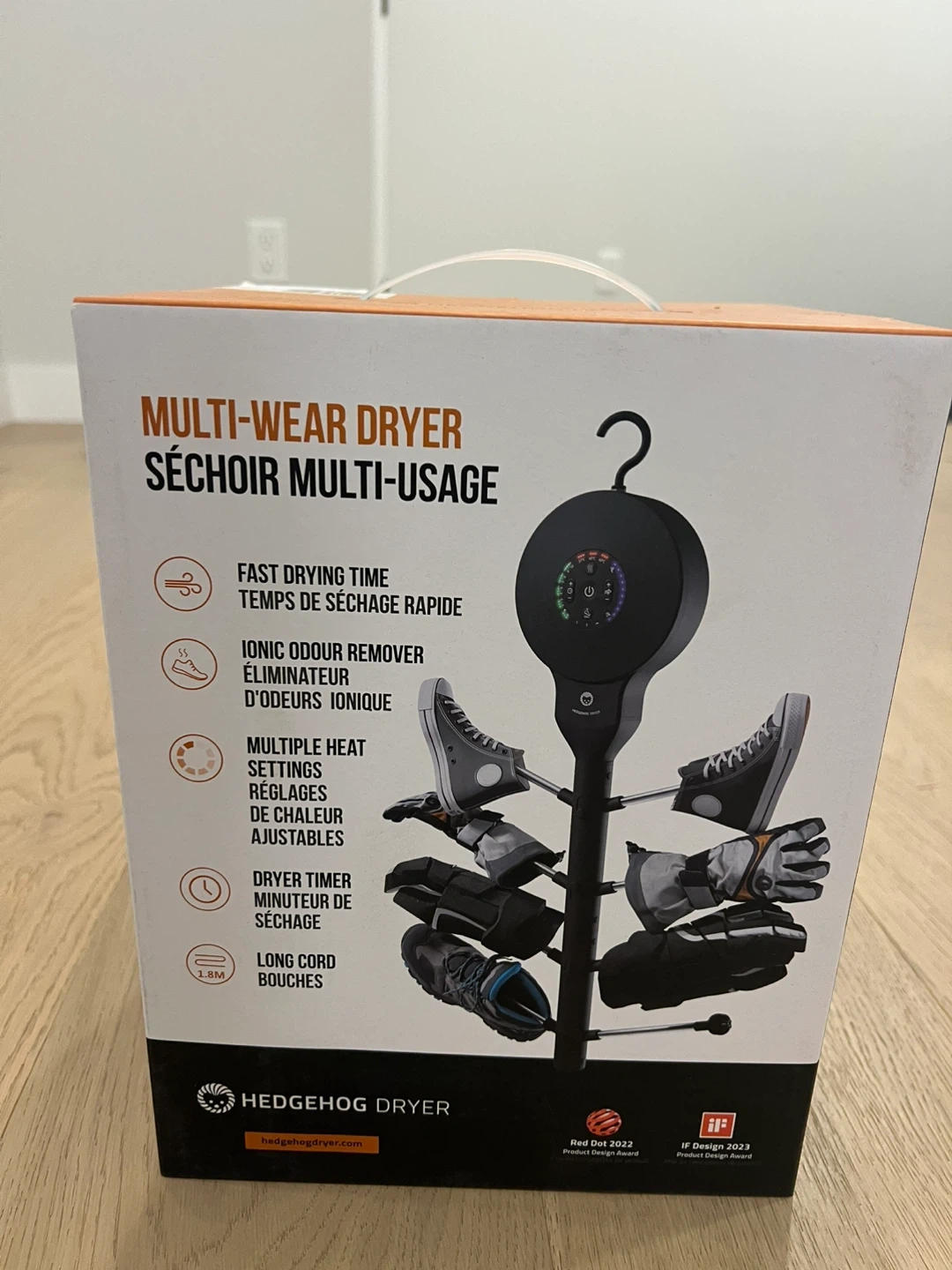 Selling a Hedgehog Multi-Wear Dryer. It's in like-new condition and comes with the original box! This dryer is designed to quickly dry multiple items at once using hot air. It features:
