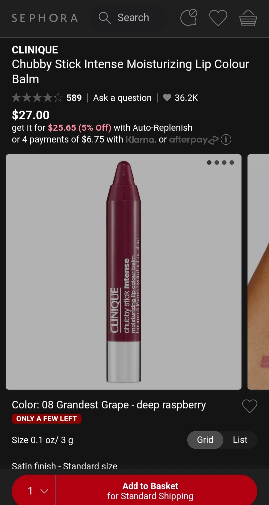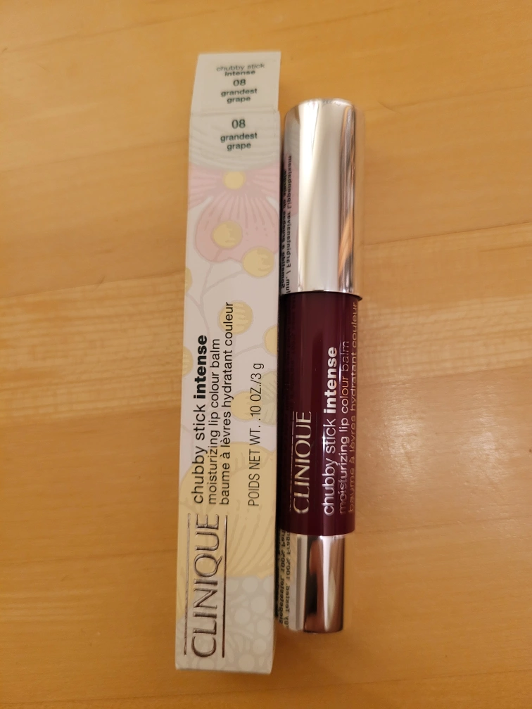 Brand new in packaging Clinique Chubby Stick Colour Balm in 08 Grandest Grape, a deep raspberry colour.
