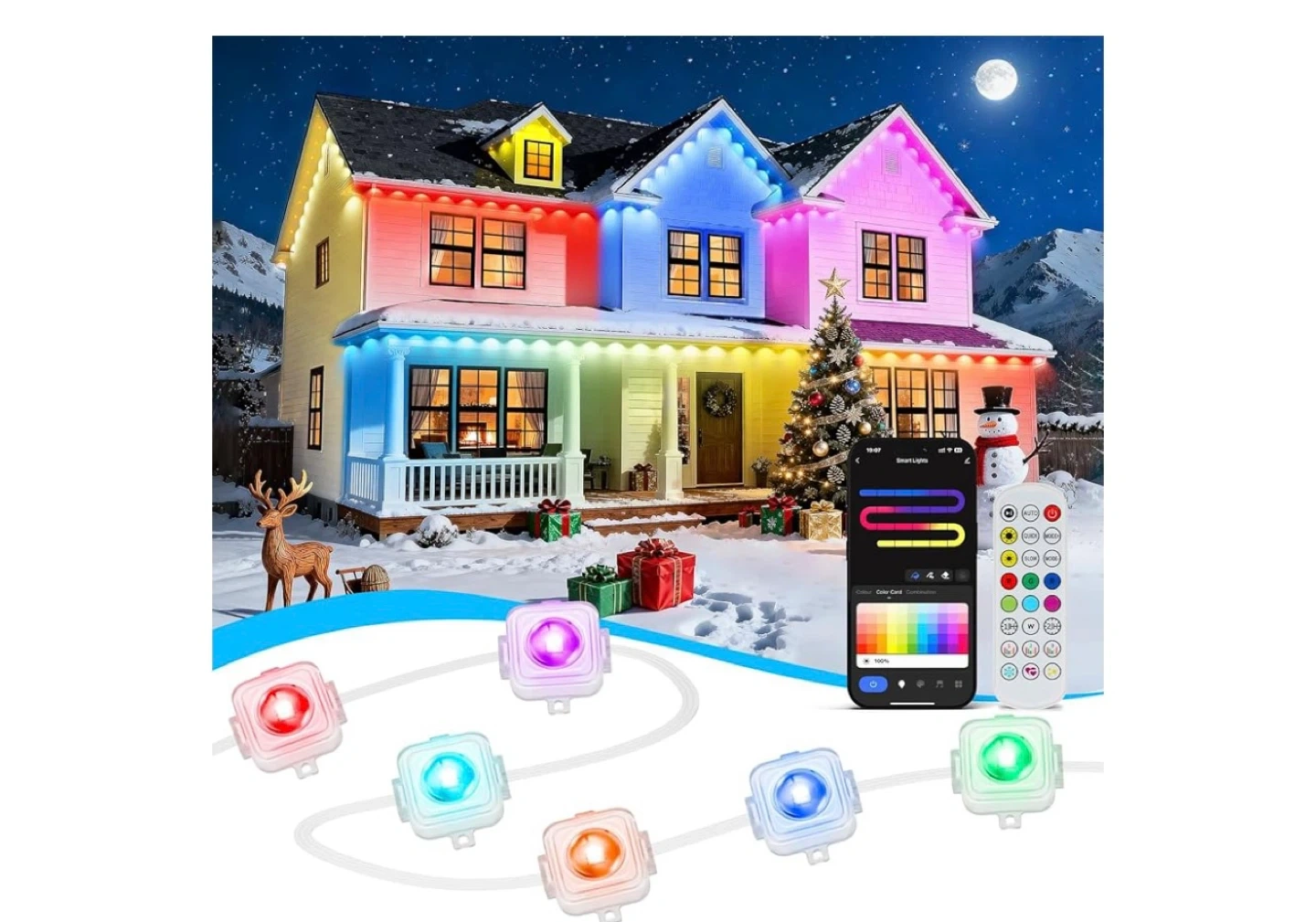 Get ready to light up your home with these smart outdoor lights! They're perfect for adding a festive touch to any occasion. Control the colors and patterns easily with your smartphone