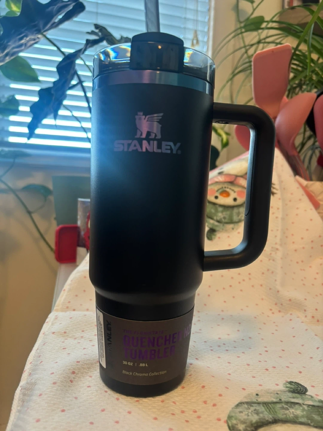 Stanley Quencher H2.0 Tumbler in the 30oz size and Black Chroma colour!