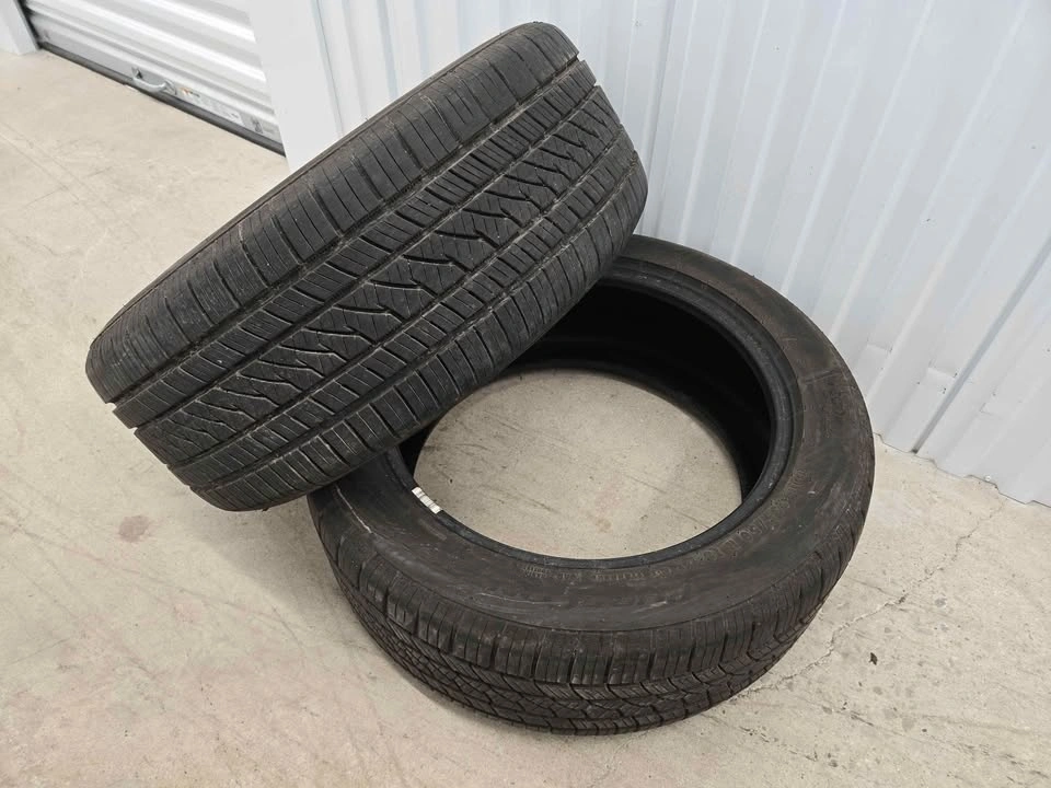Two Continental Pure Contact all season tires. 235/50R18 with very good tread for more seasons use.