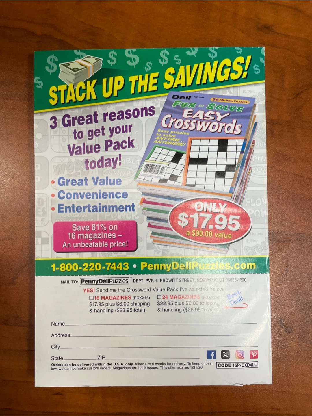 Dell's Best Easy Crosswords Jumbo Issue is up for grabs! It's part of a Value Pack that offers great value, convenience, and entertainment. Save 81% on 16 magazines, which is an unbeatable price