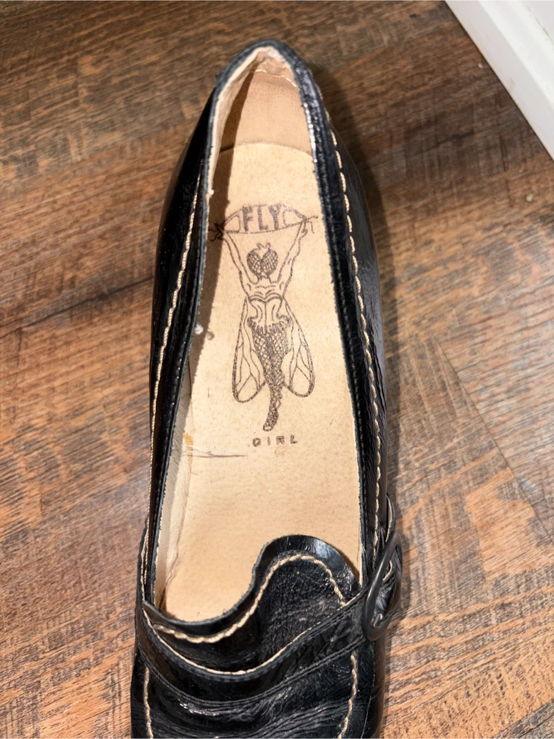 Fly Girl UK black leather wedge shoes in size 41 (approximately US 10).